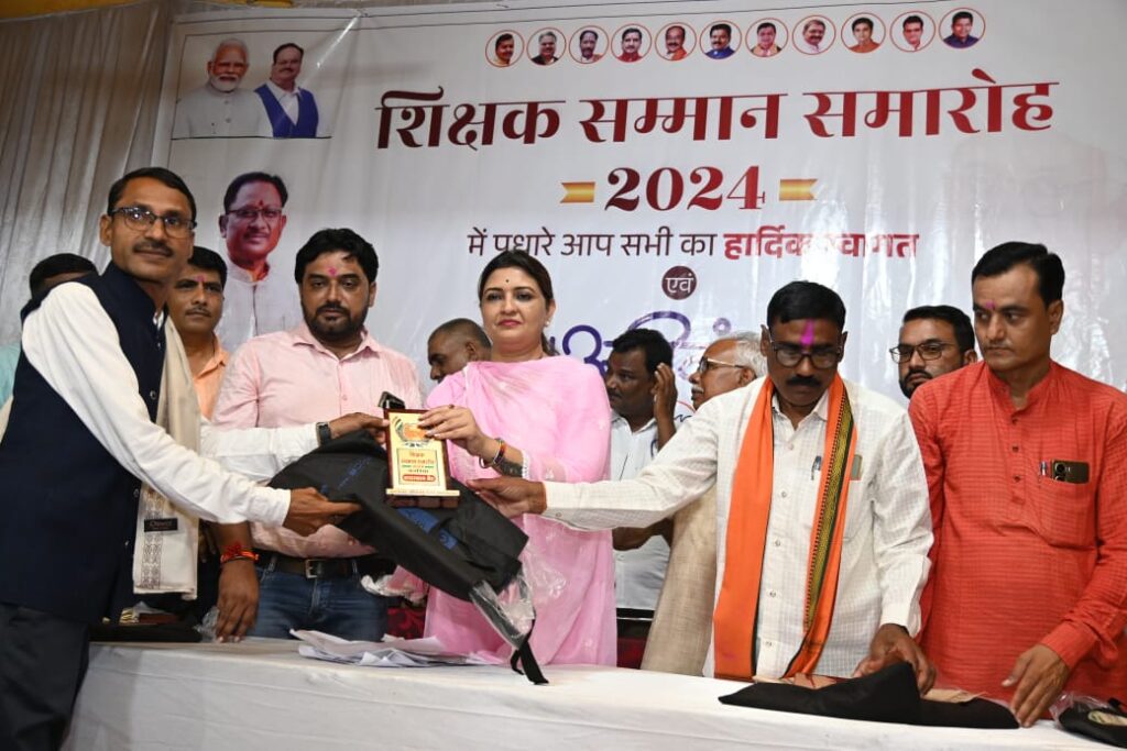 ब्यूरो रायपुर/कवर्धा:- भारत के महान शिक्षाविद डॉ.सर्वपल्ली राधाकृष्णन जी की जयंती को हमारे देश में 5 सितम्बर के दिन शिक्षक दिवस के रूप में मनाया जाता है इस अवसर पर पंडरिया विधायक भावना बोहरा द्वारा पंडरिया क्षेत्र के शिक्षकों के समर्पण और एक सभ्य समाज में उनकी महत्वपूर्ण भूमिका हेतु उन्हें प्रोत्साहित करने के लिए 8 सितम्बर को सामुदायिक भवन, नगर पंचायत परिसर पांडातराई में शिक्षक सम्मान समारोह का आयोजन किया गया कार्यक्रम में क्षेत्र के 100 से अधिक शिक्षकों को भावना बोहरा द्वारा सम्मानित किया गया और उन्हें शुभकामनाएं दी इस अवसर पर पंडरिया विधायक भावना बोहरा ने कहा कि सनातन संस्कृति और हमारे शास्त्रों में शिक्षकों को भगवान की संज्ञा दी गई है शिक्षकों को भगवान ब्रम्हा,विष्णु,महेश के रूप में बताया गया है और उनका सम्मान करना हम सभी का कर्तव्य भी है हमारे शिक्षक निस्वार्थ भाव से समाज को एक नई दिशा देने के साथ ही हमारे आने वाली पीढ़ियों और देश के उज्ज्वल भविष्य की नींव को मजबूत बनाते हैं एक शिक्षक के लिए गर्व का समय तब होता है जब उनका शिष्य उनसे भी आगे निकल जाता है इसमें उन्हें निराशा नहीं बल्कि गर्व होता है और यही एक अच्छे गुरु या शिक्षक की पहचान होती है आज हमारे देश-प्रदेश व क्षेत्र में शिक्षक लगातार अपने कर्तव्यों और दायित्वों का पूरे समर्पण भावना के साथ कार्य कर रहें हैं शिक्षक अपने विद्यार्थियों को अकादमिक शिक्षा के साथ नैतिक मूल्यों की शिक्षा भी देते हैं जिससे वह सही ग़लत की पहचान कर पाते हैं जीवन में सही मार्ग पर चलना है उसके लिए प्रेरित करते हैं भावना बोहरा ने कहा कि एक अच्छा शिक्षक अपने सबसे कमजोर विद्यार्थी के आत्मविश्वास और आत्म-सम्मान बढ़ाने में मदद करता हैं वह अपने शिष्य को अपनी क्षमताओं और योग्यताओं को पहचान कर उसको सदैव बढ़ावा देने में महत्वपूर्ण भूमिका निभाता है गुरु हमें एक सकारात्मक मानसिकता देने के साथ ही हमें अपनी जिंदगी में सफलता हासिल करने में मदद करती है सावित्रीबाई फुले जिन्होंने देश में शिक्षा खासकर महिलाओं को शिक्षा का अधिकार दिलाने का काम किया कई सामाजिक कुरूतियों को ख़त्म करने का उन्होंने काम किया इसलिए एक शिक्षक अपने ज्ञान कौशल से न केवल हमारे उज्ज्वल भविष्य और सही मार्ग की रचना करते हैं बल्कि सामाजिक परिवर्तन लाने का भी कार्य करते हैं शिक्षक को हमें ईश्वर का दिया हुआ एक अमूल्य उपहार मानना चाहिए क्योंकि वें हमें जीवन में आगे बढ़ने के लिए आवश्यक ज्ञान कौशल और आत्मविश्वास बढ़ाने में सहायक होते हैं इसलिए हमें सदैव उनके आभारी होने चाहिए और उन्हें सदैव उनको सम्मान देना चाहिए इस अवसर पर राघवेंद्र वर्मा, परमेश्वर चंद्रवंशी, मुकेश ठाकुर,सुखदेव ध