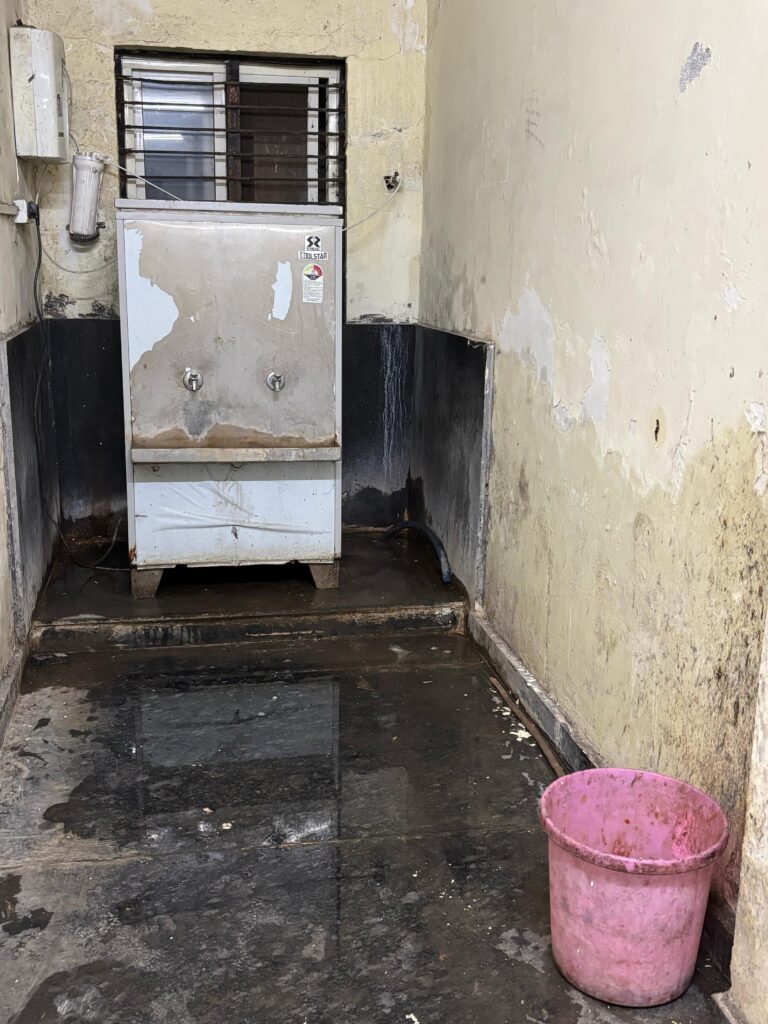 बच्चे कर रहे वाटर कूलर साफ़ : प्रभारी कर रहे ऐसी में आराम