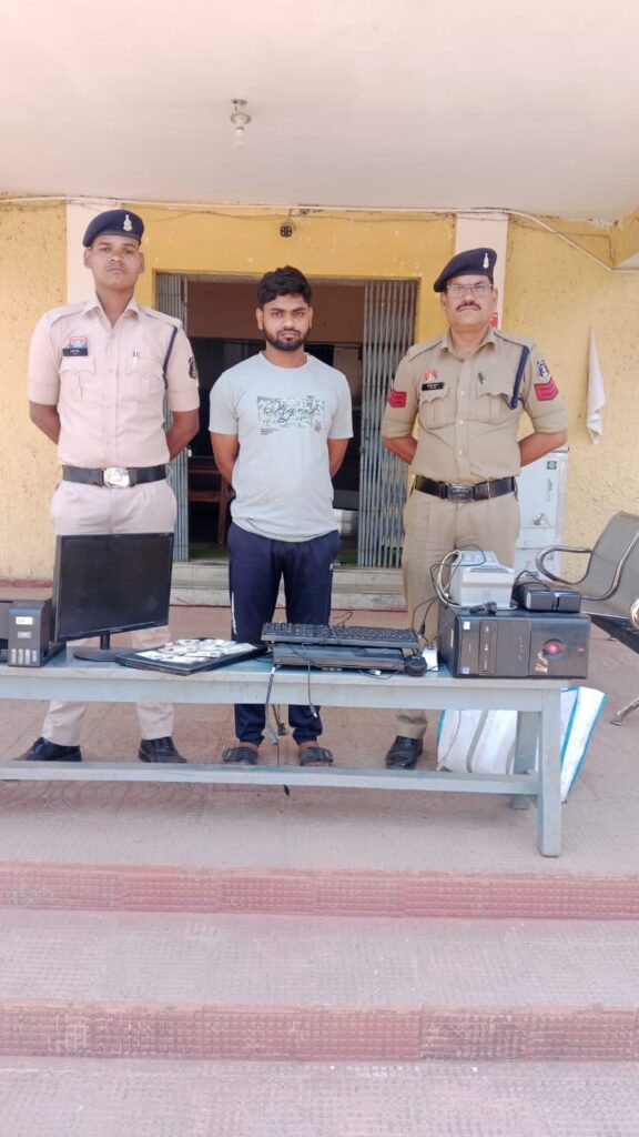 मामले को गंभीरता से लेते हुए *श्री विवेक शुक्ला (IPS) वरिष्ठ पुलिस अधीक्षक जांजगीर चांपा* के निर्देशन में तथा *अतिरिक्त पुलिस अधीक्षक उमेश कुमार कश्यप* के कुशल मार्गदर्शन में विवेचना दौरान आरोपी अलून गिर पिता बयजर अली उम्र 30 वर्ष निवासी पिंकनीधार थाना दिनहट जिला कुचबिहार पश्चिम बंगाल हा.मु. कोटमीसोनार को हिरासत मे लेकर पूछताछ करने पर अपने मेमोरेण्डम कथन में जयराम नगर के पास शुभम च्वाईस सेंटर ग्राम कोसोंदी से अपना अलग पता एवं जाति बदल कर फर्जी पेन कार्ड एवं आधार कार्ड बनवाना बताया । जिस पर शुभम च्वाईस सेंटर ग्राम कोसोंदी के संचालक शुभम साहू उम्र 26 वर्ष से पूछताछ कर मेमोरण्डम कथन लिया गया जिसने अलून गिर पिता बयजर अली का फर्जी तरीके से पता एवं जाति बदलना अपना जुर्म स्वीकार किया आरोपी शुभम साहू द्वारा फर्जी आई डी दस्तावेज तैयार कर आरोपी अलून गिर का शासन प्रशासन को धोखा देने के उद़देश्य में सहयोगी पाये जाने से घटना में प्रयुक्त इलेक्ट्रानिक संसाधन एक थम इम्प्रेशन बायोमेट्रिाक्स, एक नग लेपटाप, एक मानीटर, एक सीपीयू, एक कलर प्रिंंटर, एक की बोर्ड, माउस, एक स्कैनर, एक आईआरटीएस कैमरा, एक मल्टी फिंगर स्कैनर, एक पोर्टेबल कैमरा, एक नग मार्को एवं एक नग मोबाईल फोन को जप्ती की गई *आरोपी शुभम साहू* को विधिवत गिरफ्तार कर दिनांक 02.05.25 को न्यायिक रिमांड में भेजा गया।