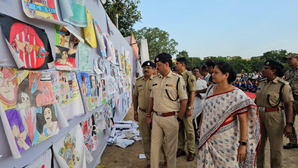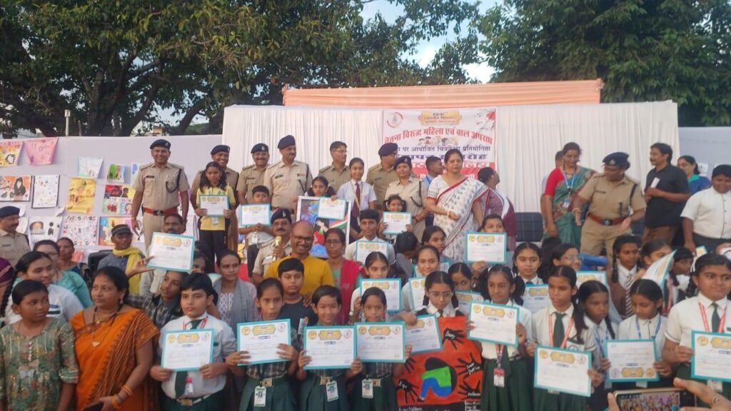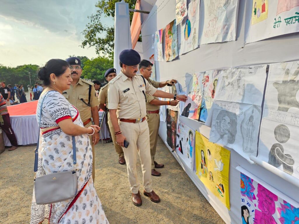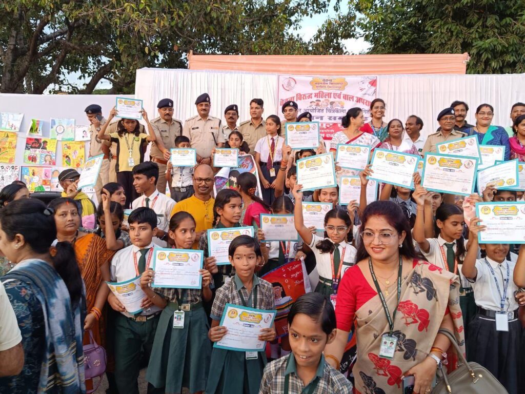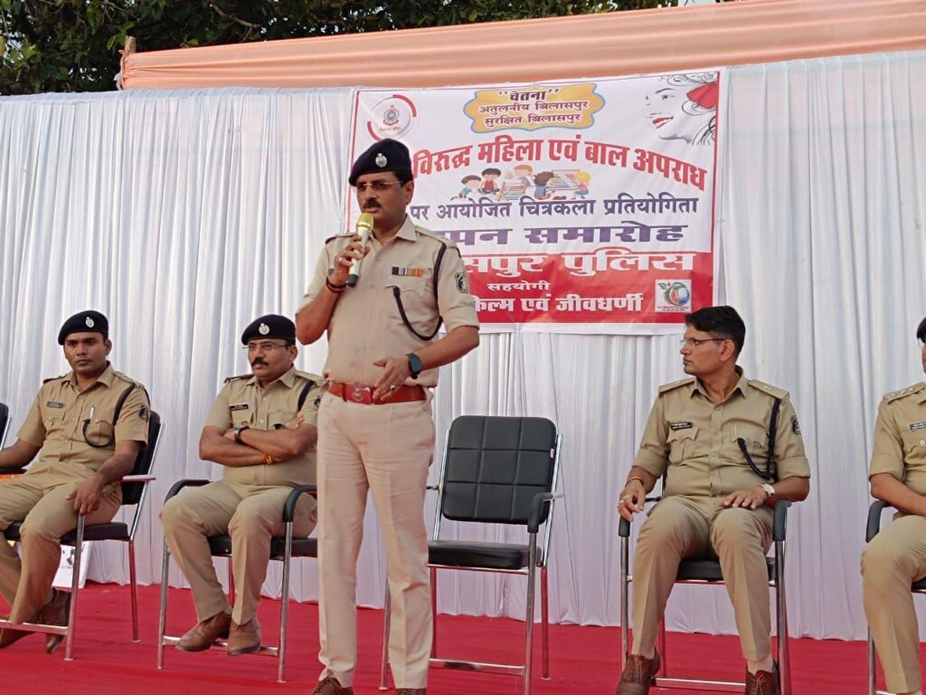 आशीष कश्यप बिलासपुर /सामुदायिक पुलिसिंग पर आधारित बिलासपुर पुलिस अधीक्षक के नवाचार चेतना कार्यक्रम अंतर्गत महिला एवं बच्चों पर घटित अपराध के संबंध में आज स्कूली बच्चों द्वारा तैयार की गई विशाल चित्र प्रदर्शनी आयोजित की गई l ज्ञात हो कि बिलासपुर पुलिस अधीक्षक श्री रजनेश सिंह के नवाचार कार्यक्रम चेतना का प्रारंभ 1 जून 2024 को हुआ था जिसका पहला चरण सड़क सुरक्षा पर आधारित था तथा दूसरा चरण साइबर फ्रॉड के प्रति जागरूकता के संबंध में आयोजित किया गया और वर्तमान में लगभग एक माह से चल रहे चेतना के तीसरे चरण में महिला एवं बच्चों पर घटित अपराध के संबंध में लगातार विभिन्न प्रकार के कार्यक्रम विभिन्न समूह, स्कूल, कॉलेज एनसीसी, एनएसएस की इकाई, प्रजापिता ब्रह्माकुमारी आदि संस्थाओं के द्वारा जागरूकता कार्यक्रम लगातार किया गया।