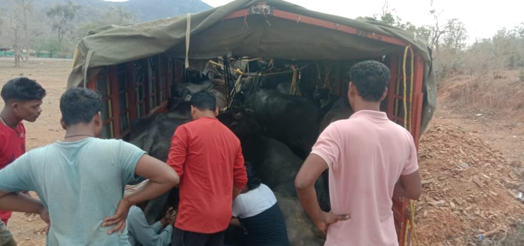 संयुक्त टीम द्वारा ग्राम तरसिंग में नाकाबंदी पाईंट लगाया गया कुछ देर बाद मुखबिर के बताये अनुसार संदिग्ध ट्रक क्रमांक यु.पी. 16 ई.टी. 9618 आते दिखाई दिया जो सामने पुलिस को देखकर नाकाबंदी स्थल से करीबन 200 मीटर पहले ही वाहन को खड़ाकर जंगल व अंधेरा का फायदा उठाकर भग गया खड़ी वाहन का पुलिस स्टाप द्वारा गवाहों के समक्ष तलाशी लिया गया। जिसमें 12 नग भैसा, 07 नग मैसी कुल 19 नग भैसा मैसी पाया गया जिसका तलाशी पंचनामा तैयार किया गया। उक्त मवेशियों को निर्दयता व कुरतापूर्वक गाड़ी में भरकर