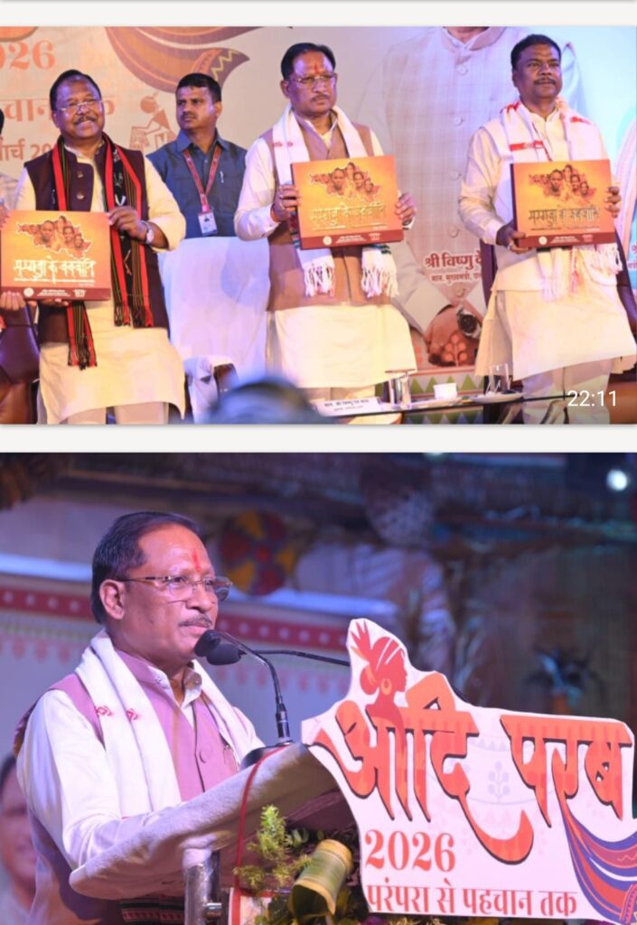 मुख्यमंत्री श्री विष्णु देव साय ने नवा रायपुर स्थित आदिम जाति अनुसंधान एवं प्रशिक्षण संस्थान (TRTI) परिसर में आयोजित दो दिवसीय ‘आदि परब’ के समापन समारोह को संबोधित करते हुए यह बात कही।