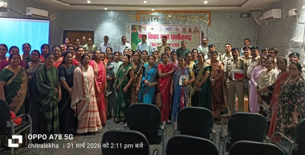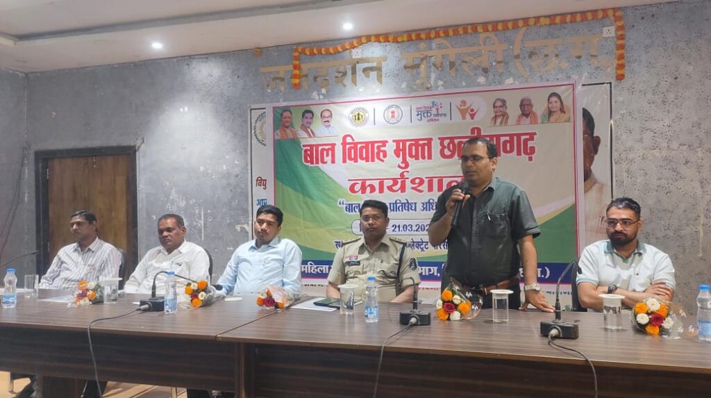 तीजराम साहू ब्यूरो मुंगेली — जिले को बाल विवाह मुक्त बनाने की दिशा में एक महत्वपूर्ण पहल करते हुए आज जनदर्शन सभा कक्ष, मुंगेली में जिला स्तरीय कार्यशाला का आयोजन किया गया। कलेक्टर श्री कुंदन कुमार के निर्देशानुसार एवं श्रीमती संजूला शर्मा जिला कार्यक्रम अधिकारी मुंगेली के नेतृत्व में आयोजित इस कार्यशाला में विभिन्न विभागों के महिला एवं बाल विकास विभाग, जिला प्रशासन, पुलिस विभाग, शिक्षा विभाग, चाईल्ड हेल्प लाइन, ग्राम पंचायत सचिव, पर्यवेक्षक, अधिकारियों, जनप्रतिनिधियों, आंगनबाड़ी कार्यकर्ताओं एवं सामाजिक संगठनों ने सहभागिता निभाई।