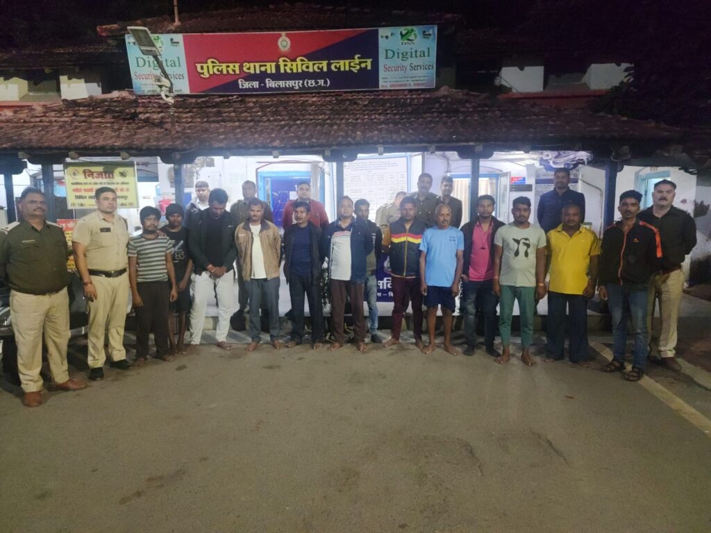 आशीष कश्यप बिलासपुर:-आज दिनांक 08.12.23 को जिला पुलिस अधीक्षक श्री संतोष कुमार सिंह (भापुसे) के निर्देश पर तथा अतिरिक्त पुलिस अधीक्षक (शहर) श्री राजेंद्र जायसवाल, अतिरिक्त पुलिस अधीक्षक (ग्रामीण) श्रीमती अर्चना झा, नगर पुलिस अधीक्षक (सिविल लाइन) श्री संदीप पटेल (भापुसे) के मार्गदर्शन में सभी थाना प्रभारी द्वारा शहरी एवं ग्रामीण क्षेत्र में सार्वजनिक स्थानों, तालाब के किनारे, खुले मैदान में, चौक-चौराहों पर शराब पीने वाले लोगों पर ताबड़तोड़ कार्यवाही की गई। इसके साथ ही सभी होटल तथा ढाबा संचालकों को चेक किया गया है तथा ऐसे होटल/ढाबा संचालक जो अपने परिसर में शराब पिलाने का काम