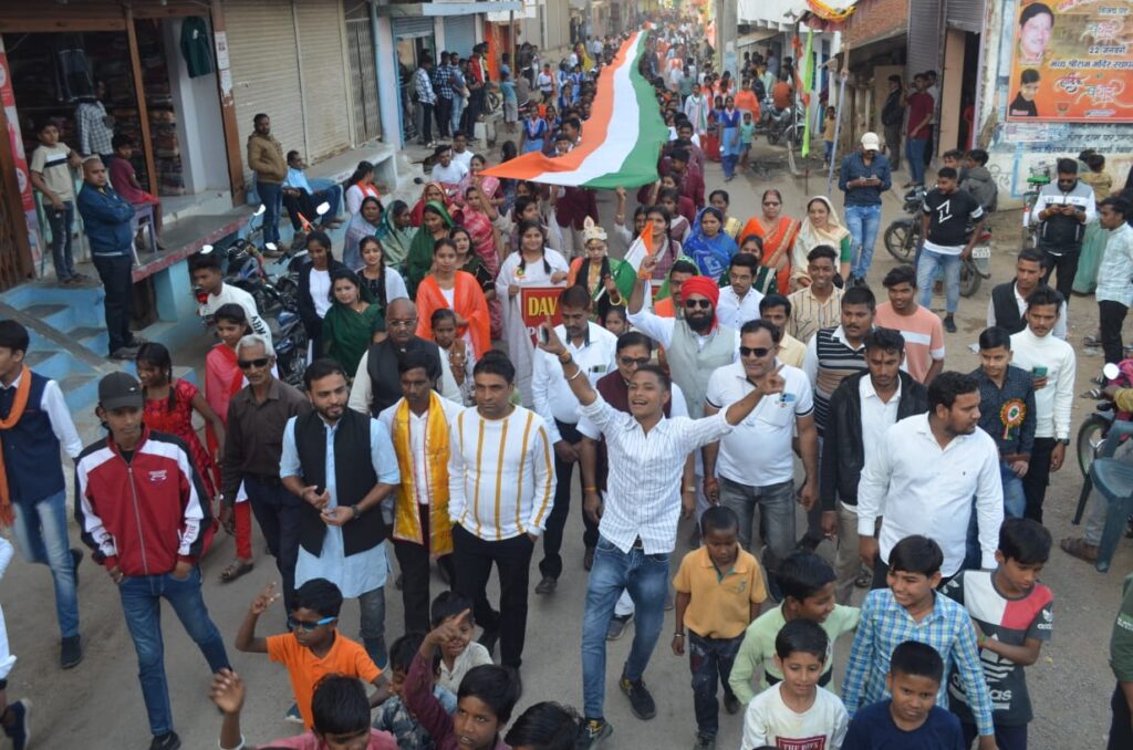 75 मीटर का तिरंगा जिसे सभी देश भक्त ने संभाल रखा था और 100 मीटर से अधिक लंबे इस शोभायात्रा में भारत माता की झाकी आगे चलती रही जिससे इस आयोजन की शोभा बढ़ती जा रही थी।