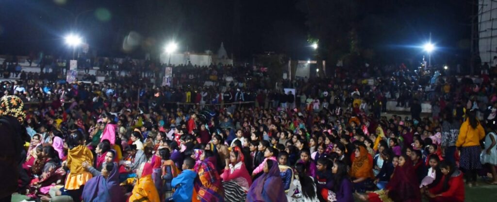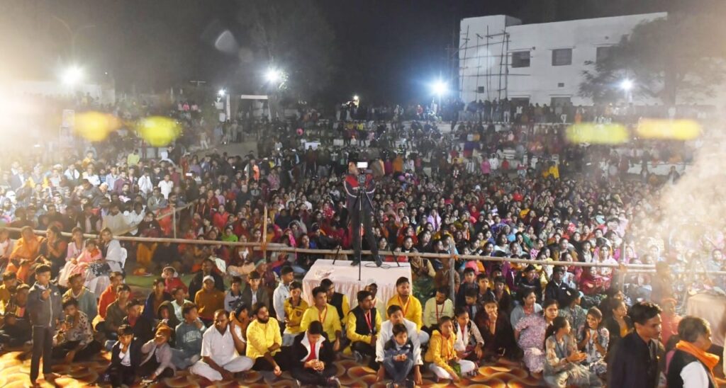 मुंगेली // माता परमेश्वरी महोत्सव के पांचवें दिन शुक्रवार को छत्तीसगढ़ के सुप्रसिद्ध भजन गायक देवेश शर्मा रायगढ़ वाले द्वारा माता के गीतों की प्रस्तुति कर भक्ति गीतों की बयार बही, दर्शक भक्ति गीत में झूमते नजर आये, बड़ी संख्या में मातारानी की भक्त उमड़ पड़े। जिले के आगर खेल मैदान में हुये जगराता में देवांगन समाज के हजारों लोगों की उपस्थित रहे और शहर में देर रात तक भक्ति गीत में झूमते व नाचते हुए माता की जयकारों से गुंज उठा। भजन गायक पूरे जोश खरोश के साथ श्रोताओं को माता के जयकारे लगवाते रहे पूरा शहर माता की जयकारों से देर रात तक गुंजता रहा । जगराता कार्यक्रम में माॅ काली , हनुमान और बब्बर शेर के जीवित झांकी का दर्शन एवं प्रभु श्रीराम के गीत नृत्य के माध्यम से आकर्षक प्रस्तुति भी दिया गया। तो वही भगवा रंग की प्रस्तुति पर लोगो ने जमकर जय श्रीराम के जयकारे लगाए भक्तो ने भगवा मय में लीन होकर झूमने लगे। इसके पूर्व माता रानी की विधि-विधान से पूजा-अर्चना कर कार्यक्रम की शुरुआत गणेश वंदना से भक्ति गीतों की शुरूआत हुई। जिसमे जसभजन गायक देवेश शर्मा मोर पथरा के देवता, नदिया मा रोवय दाईं लाइक, पताल चटनी, नाचे जो बब्बर शेर रे, आमा पान के पतरी जैसे एक से बढ़कर एक गीत प्रस्तुत किया। इस दौरान उपस्थिति अतिथियों ने कार्यक्रम की सराहना करते हुए देवांगन समाज को कार्यक्रम की बधाई व शुभकामनाएं भी दिया। कार्यक्रम को सफल बनाने के लिए देवांगन समाज के अध्यक्ष आनंद देवांगन अधिवक्ता, युवा अध्यक्ष दुर्गेश देवांगन, विष्णु देवांगन, सुदामा देवांगन, अजय देवांगन, शत्रुहन देवांगन, अमरनाथ देवांगन, द्वय अनिल देवांगन, जगदीश देवांगन, महेश देवांगन, जलेश देवांगन, बलराम देवांगन, सुशील देवांगन यश स्टेडियो, नानू देवांगन, कोमल देवांगन यूट्यूबर, लल्ला देवांगन, ददुआ देवांगन सहित समाज के अन्य लोगों विशेष योगदान रहा।