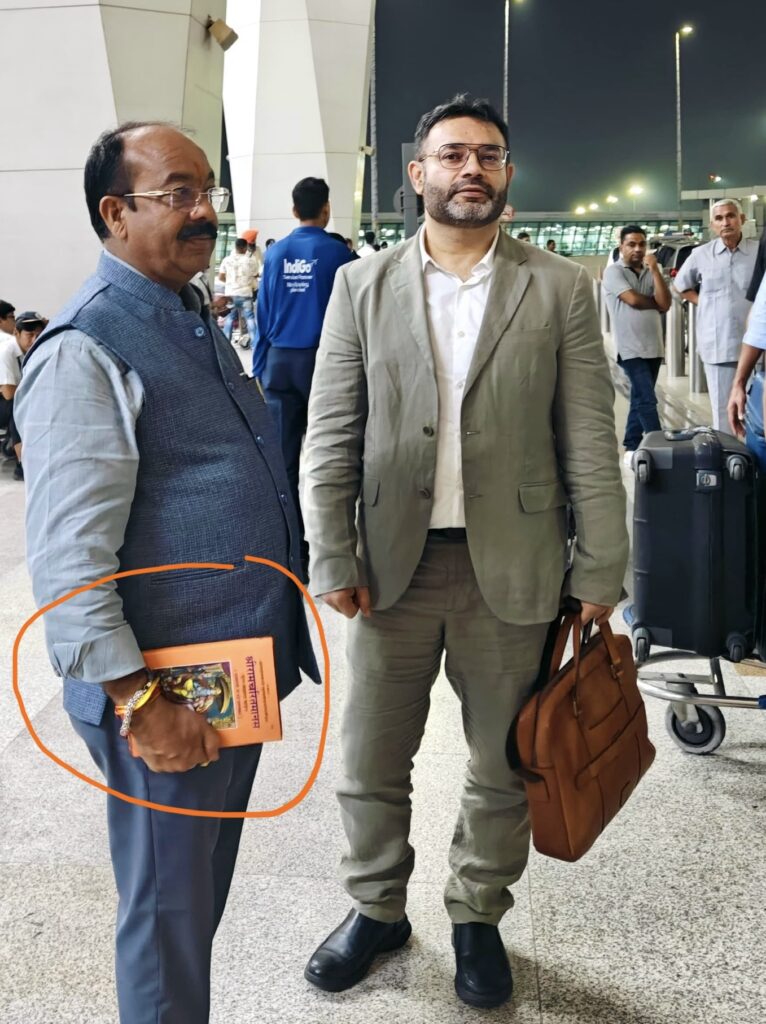 9 महीने पहले बनी भाजपा सरकार के पहले शासकीय विदेश दौरे में जाते हुए उप मुख्यमंत्री अरुण साव दिल्ली इंटरनेशनल एयरपोर्ट पर हाथ में रामचरित मानस लेकर जाते दिखे।