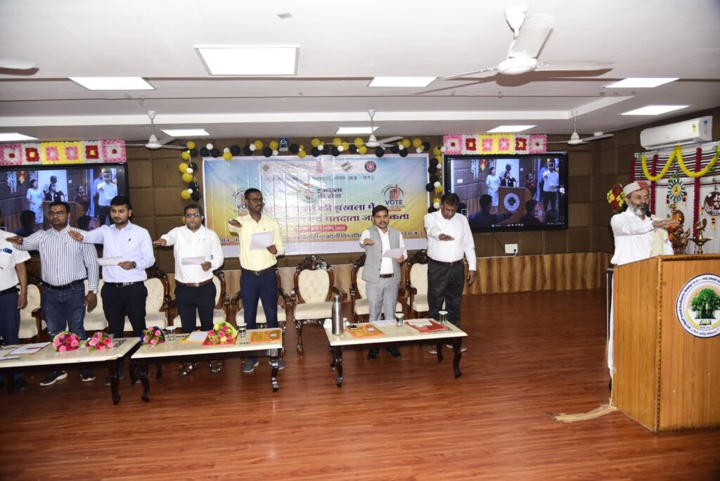 *कुलपति आचार्य श्री बाजपेई ने दिलाई मतदाता शपथ-* कार्यक्रम में कुलपति आचार्य श्री बाजपेई द्वारा सभी लोगों को देश की लोकतांत्रिक परम्परा बनाये रखने तथा निर्भीक होकर अपने मताधिकार का प्रयोग करने की शपथ दिलाई गई।
