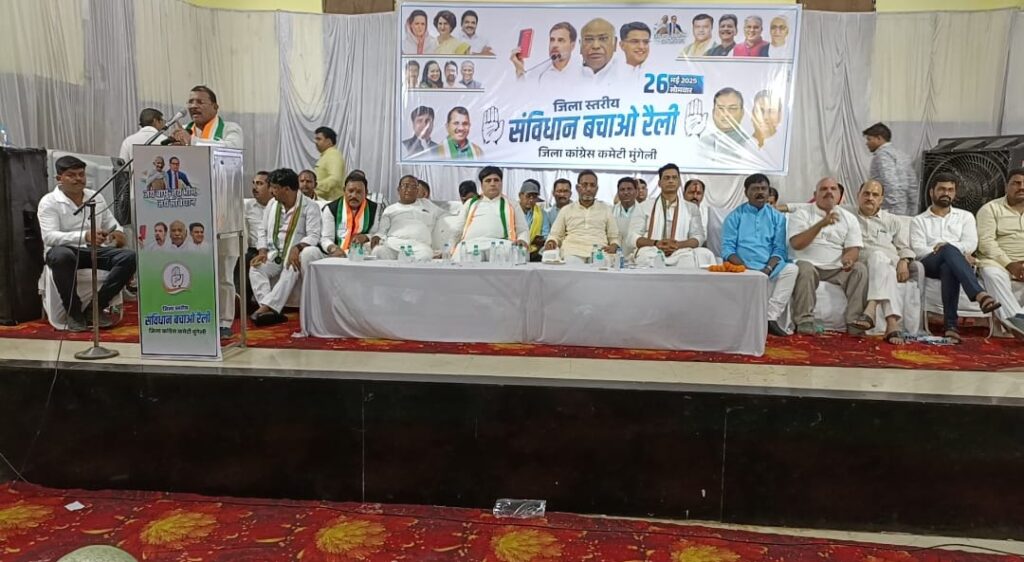 तिजराम साहू ब्यूरो मुंगेली – ए आई सी सी के निर्देश पर पुरे प्रदेश मे सविधान बचाओ रैली का आयोजन किया जा रहा है इसी कड़ी मे 26 मई को जिला स्तरीय सविधान बचाओ रैली का आयोजन किया गया,, जिसमे मुख्य रूप से जगत गुरु रूद्र कुमार पूर्व केबिनेट मंत्री, एवं ए आई सी सी महासचिव एवं भिलाई विधायक देवेंद्र यादव उपस्थित रहे। कांग्रेस मुखिया मर्लिकार्जुन खडगे एवं राहुल गाँधी द्वारा चलाये जा रहे सविधान बचाओ रैली को लेकर कांग्रेस कार्यकर्ताओ के बीच अपने विचार साझा किये. दोनों नेताओं ने अपने ओजस्वी संबोधन में देश की लोकतांत्रिक व्यवस्था और संविधान पर हो रहे हमलों के विरुद्ध एकजुट होकर आवाज़ उठाने की अपील की।