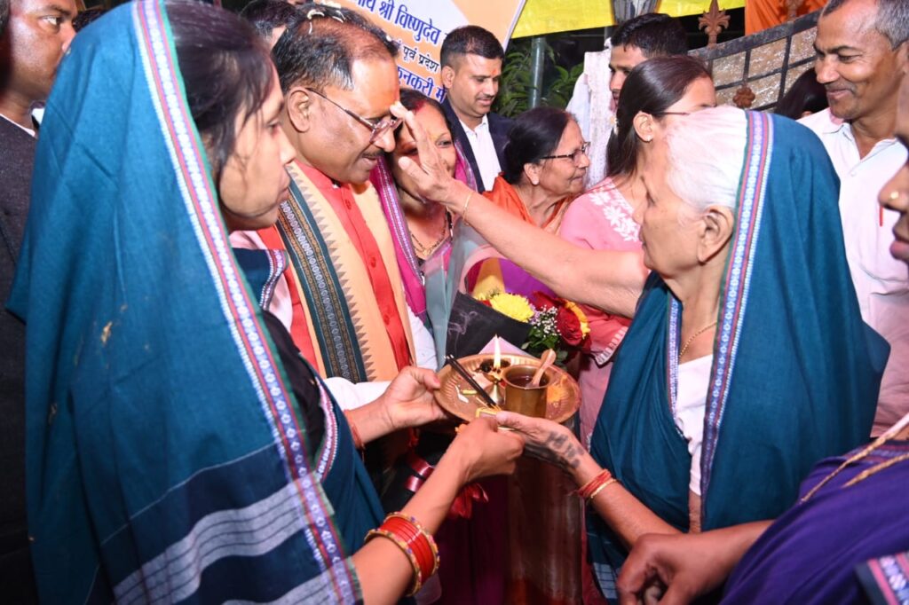 रायपुर/// मुख्यमंत्री श्री विष्णुदेव साय ने आज अपने शपथ ग्रहण उपरांत मंत्रालय महानदी भवन नवा रायपुर में अपना कार्यभार ग्रहण किया। मुख्यमंत्री श्री साय के कार्यभार ग्रहण के उपरांत राजधानी रायपुर के विधायक कॉलोनी स्थित अपने आवास पहुंचने पर उनकी मां, धर्मपत्नी सहित परिजनों ने आरती उतार कर उनका स्वागत किया।
