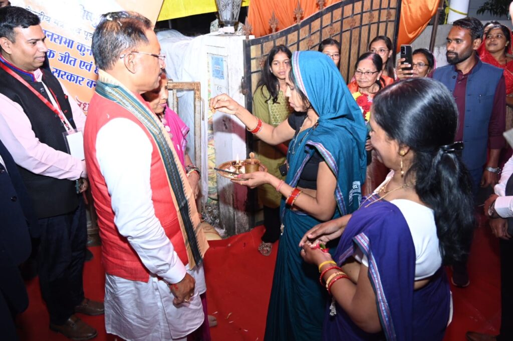 रायपुर/// मुख्यमंत्री श्री विष्णुदेव साय ने आज अपने शपथ ग्रहण उपरांत मंत्रालय महानदी भवन नवा रायपुर में अपना कार्यभार ग्रहण किया। मुख्यमंत्री श्री साय के कार्यभार ग्रहण के उपरांत राजधानी रायपुर के विधायक कॉलोनी स्थित अपने आवास पहुंचने पर उनकी मां, धर्मपत्नी सहित परिजनों ने आरती उतार कर उनका स्वागत किया।