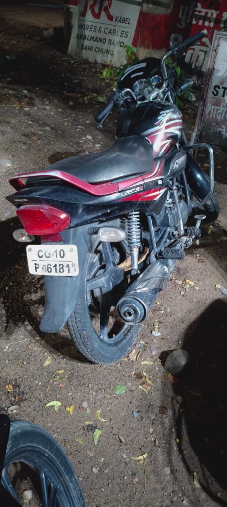 छ.ग ने दिनाक 17.05.25 की थाना सिटी कोतवाली में रिपोर्ट दर्ज कराया कि दिनांक 16.05.25 को अपनी मोटर सायकल सुपर स्प्लेण्डर CG1B/P 6181 को अपने घर के बाहर रोज की तरह रात्रि करीब 11.00 बजे खड़ी कर घर के अंदर चला गया था जो सुबह 08.00 बजे तो देख की मोटर सायकल को किसी अज्ञात व्यक्ति द्वारा चोरी कर लिया है प्रार्थी की रिपोर्ट पर थाना सिटी कोतकली में अप क -272/25 घाया 303(2) बीएनएस का अपराध पंजीबद्ध कर विवेचना में लिया गया था प्रकरण में माल मशरूका की लगातार पतासाजी की जा रही थी श्रीमान वरिष्ठ पुलिस अधीक्षक महोदय श्री रजनेश सिंह ( भापुसे) अति पुलिस अधीक्षक (शहर) श्री राजेन्द्र जायसवाल एवं नगर पुलिस अधीक्षक श्री अक्षय प्रमोद साबदा (भापुसे) के द्वारा चोरी के प्रकरणों में गंभीरता से पतासाजी कर कार्यवाही करने के निर्देश पर थाना सिटी कोतवाली पुलिस द्वारा मुखबीर की सूचना के आधार पर दबिश देकर आरोपी रोशन गिरी गोस्वामी को अभिरक्षा में लेकर पुछताछ किया गया जो प्रकरण की मशरूका मोटर सायकल सुपर स्लेण्डर कमांक- CG10/P 6181 को चोरी कर उपयोग करना एवं मोटर सायकल को जैन लस्सी के पीछे पुराना जगात मील के खण्डहर में छुपा कर रखाना बताया आरोपी से मोटर सायकल सुपर स्लेण्डर कमांक-CG10/P 6181 को जप्त कर आरोपी को दिनांक 14.06.25 को विधिवत गिरफ्तार कर न्यायिक रिमाण्ड पर जेल भेजा गया है।