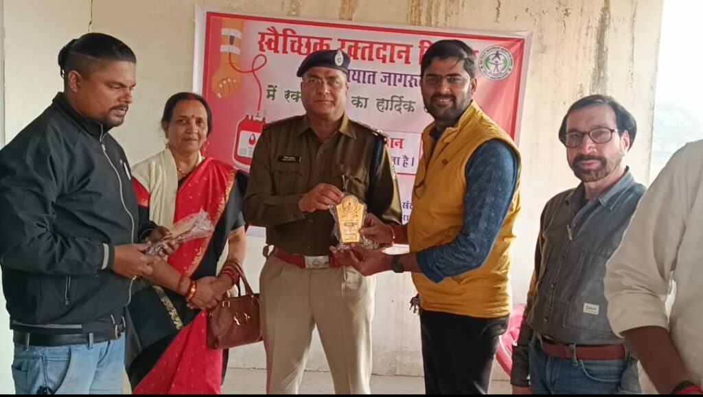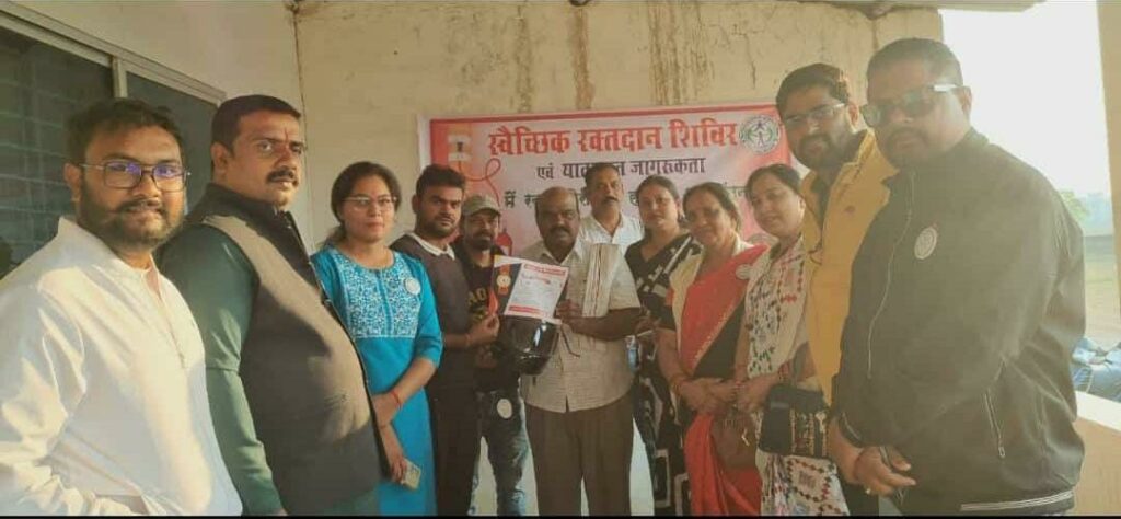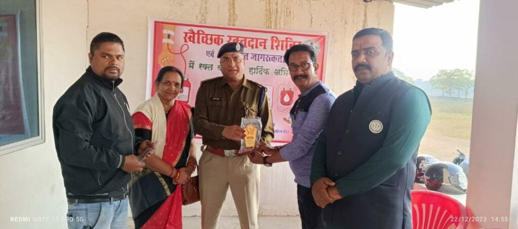 मनोज साहू ब्यूरो जांजगीर चांपा:-वेल विशर फाउंडेशन,अघोराचार्य बाबा कीनाराम विद्यापीठ व शिखर इंटीयूट के सयुक्त तत्वावधान में रक्तदान शिविर का आयोजन किया गया।जिंसमे 75 रक्तवीरो ने रक्तदान किया।कार्यक्रम के मुख्यअतिथि जांजगीर विधायक पुलिस अधीक्षक विजय अग्रवाल जी रहे तथा विशिष्ट अतिथि के रूप में जांजगीर विधायक व्यास कश्यप जी एवं बेरिस्टर छेदीलाल अकादमी के अध्यक्ष देवेश सिंह की रही, जांजगीर विधायक व्यास कश्यप ने कहा कि रक्तदान बहुत ही नेक कार्य है । कोई व्यक्ति एक बार रक्तदान कर तीन लोगो की जान बचा सकता है । हर व्यक्ति को रक्तदान के प्रति जागरूक रहना चाहिए । जांजगीर पुलिस अधीक्षक विजय अग्रवाल जी ने कहा कि संस्था वेल विशर फाउंडेशन द्वारा लगातार समाज सेवा का कार्य कर रही है ।रक्तदान महादन होता है और हर स्वस्थ व्यक्ति को रक्तदान जरूर करना चाहिए । कार्यक्रम में बाबा किनाराम स्कूल के डायरेक्टर रघुवीर सिंह, स्वेता सिंह, शिखर इंटीयूट के संचालक भूपेश सिंह वेल् विशर फाउंडेशन के अध्यक्ष अविनाश सिंह,सचिव चिराग शर्मा कोषाध्यक्ष श्रीमती रंजना सिंह, किशोर सिंह गहलोत, मनोज पांडेय, सुमन सिंह,दीक्षा चंद्रा, अवधेश सिंह, रिशु सिंह, आशु सिंह, प्रियंका सिंह एवं आशीर्वाद ब्लड बैंक चाम्पा के सदस्यों की उपस्थित रही एवं सभी के प्रत्यक्ष अप्रत्यक्ष सहयोग से कार्यक्रम को सफल बनाया