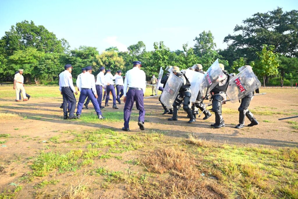 शुक्रवार को परेड सलामी पश्चात करीब 118 पुलिसकर्मी को बलवा ड्रिल अभ्यास कराया गया। इसमें अश्रु गैस, वज्र वाहन, केन पार्टी, लाठी पार्टी , आर्म्स पार्टी , बलवा पार्टी, वरुण (वाटर कैनन दस्ता), एंबुलेंस पार्टी सम्मिलित हुए। अभ्यास में पुलिस की एक पार्टी दंगाई और दूसरी पार्टी बलवा ड्रिल की किट पहनकर इन्हें रोक रही थी। जैसे ही दंगाई बने पुलिसकर्मियों ने पथराव और उपद्रव शुरू किया तो पुलिसकर्मियों ने पहले बैरीकेड से इन्हें रोका। जब अनियंत्रित हो गए तो अश्रु गैस के गोले छोड़े। फिर कैन, लाठी और राइफल पार्टी के माध्यम से ड्रिल पूर्ण किया गया।