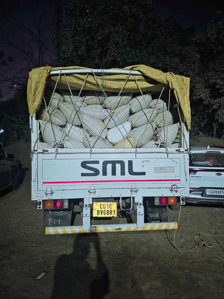 आशीष कश्यप बिलासपुर:-दिनॉक 21/12/2025 को थाना रतनपुर में सूचना मिला कि माजदा क्रमाँक CG 10BV 6881 का चालक अपने वाहन में अवैध रूप से धान खरीदी कर कृषि उपज मण्डी में अवैध तरीके से बेचने के लिये ग्राम खरगहनी थाना कोटा से ग्राम तेन्दुभाठा थाना रतनपुर लेकर जा रहा है, कि सूचना से वरिष्ठ अधिकारियों को अवगत कराकर वरिष्ठ अधिकारियों से प्राप्त दिशा निर्देश पर थाना प्रभारी रतनपुर के द्वारा टीम गठित कर ग्राम बारीडीह मेनरोड में घेराबंदी कर उक्त वाहन को पकड़ा, वाहन चालक रामेश्वर ध्रुव के द्वारा माजदा में भरे 150 बोरी धान का खरीदी-बिक्री का दस्तावेज पेश नहीं करने पर अवैध धान होने की अंदेशा पर मौके पर 106 BNSS के प्रावधानों के तहत वाहन एवं 150 बोरी धान को जप्त कर विधिवत कार्यवाही करते हुए, तहसीलदार रतनपुर एवं खाद्य निरीक्षक को सूचना दिया गया जिनके द्वारा मौके पर पहुंचकर अग्रिम कार्यवाही की जा रही है।