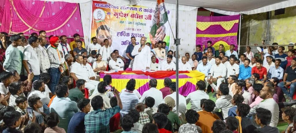 निर्माण कर गरीब बच्चों के शिक्षा के लिए खोलकर काम किया हो चाहे बस्तर के आदिवासी किसान भाइयों का ज़मीन वापसी हो बस्तर के आदिवासीयो को तेंदूपत्ता की क़ीमत 2500 रुपए से बढ़ाकर 4000 रुपए प्रति मानक बोरा हो ऐसे अनेको योजनाए किसानो के लिए मज़दूरों के लिए आज भाजपा शासन में सारे योजनाएँ बंद पड़ी है कांग्रेस के राष्ट्रीय अध्यक्ष मल्लिकार्जन खरगे सोनिया गांधी व पूर्व राष्ट्रीय कांग्रेस अध्यक्ष राहुल गांधी ने कांग्रेस के घोषणा पत्र ‘ न्याय पत्र ‘ में छत्तीसगढ़ राजनाँदगाँव लोकसभा सहित पूरे राष्ट्र के लिए 5 न्याय ( किसान न्याय , नारी न्याय , श्रमिक न्याय , युवा न्याय , भागीदारी न्याय ) के साथ 25 गारंटी जारी किए है वही केंद्र में कांग्रेस गठबंधन की सरकार बनती है तो कैबिनेट की पहली मीटिंग में इसको लागू करने का प्रस्ताव लाया जाएगा भूपेश बघेल ने नारी न्याय योजना की जानकारी देते हुए कहा की छत्तीसगढ़ और राजनाँदगाँव लोकसभा के जनता को बताए की कांग्रेस की सरकार बनते ही प्रत्येक महिला को साल के 1 लाख रुपए दिए जाएँगे 5 वर्षों में 5 लाख रुपए प्रत्येक महिला को दिए जाएँगे और श्रमिक न्याय में प्रत्येक मज़दूर भाइयों के लिए उनके मज़दूरी दर 400 प्रति दिवस दिए जाएँगे युवा न्याय में केंद्र की 30 रिक्त पद कांग्रेस की सरकार बनते ही भरे जाएँगे किसान न्याय में किसान भाइयों के लिए उनके फसल के लिए MSP के लिए MS स्वामीनाथन आयोग की गठन कर किसान भाइयों के लिए उनके फसल के लगात राशि से 50% अधिक दिए जाएँगे आगामी 26 अप्रैल 2024 को राजनाँदगाँव लोकसभा के लिए मतदान होने है जिसमें कांग्रेस प्रत्याशी भूपेश बघेल है इस अवसर पर ज़िला अध्यक्ष होरीराम साहू बैजनाथ चन्द्राकर लालजी चंद्रवंशी कुंडा प्रभारी संजीत बनर्जी ब्लॉक अध्यक्ष उत्तरा दिवाकर पूर्व पंडरिया ब्लॉक अध्यक्ष कौशल चन्द्राकर पूर्व कुंडा ब्लॉक अध्यक्ष उत्तर चन्द्राकर पूर्व बिलासपुर अध्यक्ष बी आर सिंगरोल वरिष्ठ कांग्रेसी बाबा खान गौटिया साधेलाल अनंत कुलबुल सोनवानी इंज़ी योगेश्वर चन्द्राकर हेमंत सिंगरोल लालबहादुर चंद्रवंशी काशीनाथ सिंह ठाकुर प्रीति ठाकुर रामखिलवान साहू माधुरी साहू भागवत चन्द्राकर मनोहर टोंद्रे , शिवकुमार यादव , मनरख कुम्भकर , अंशु साहू , वेदप्रकाश चन्द्राकर , ईश्वर निषाद , अजित पाटले ,रामप्रसाद चन्द्राकर , गोरे चन्द्राकर , चन्द्रभान कोसले ,आरती सुमन घनश्याम टण्डन रामनाथ कुर्रे सहित अन्य कांग्रेस के कार्यकर्ता व ग्रामवासी उपस्थित रहे।