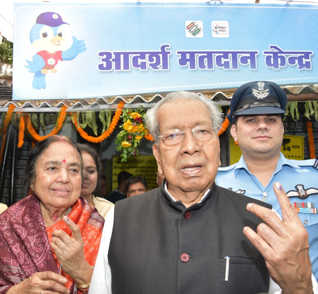 रायपुर, 17 नवंबर 2023/राज्यपाल श्री विश्वभूषण हरिचंदन एवं प्रथम महिला श्रीमती सुप्रभा हरिचंदन ने आज सिहावा भवन सिविल लाईन्स स्थित आदर्श मतदान केंद्र पहुंच कर अपने मताधिकार का प्रयोग किया।
