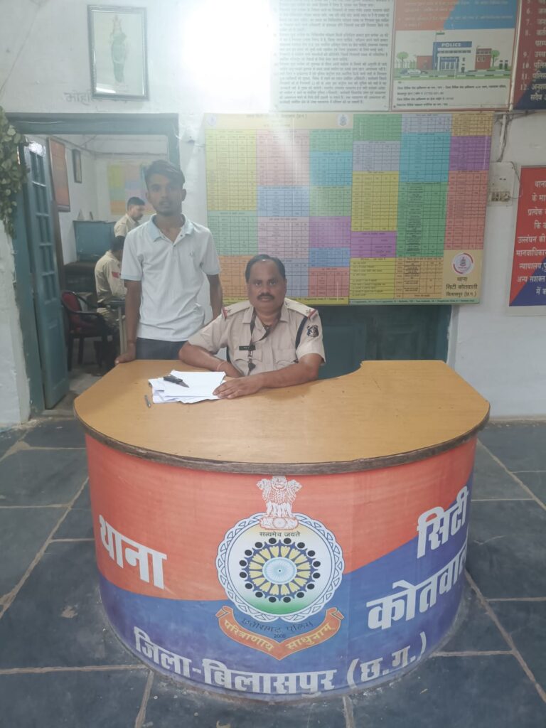 आशीष कश्यप बिलासपुर :-ममाले का संक्षिप्त विवरण इस प्रकार है कि दिनांक – 14/10 /2024 को मुखबीर के मोबाईल पर सूचना मीला की एक लड़का ज्वाली नाला मेन रोड के पास अपने पेंट के जेब में बटनदार चाकू लेकर घूम रहा की सूचना पर श्रीमान पुलिस अधीक्षक महोदय श्री रजनेश सिंह, उप पुलिस अधीक्षक (शहर) श्री उमेश कश्यप एवं नगर पुलिस अधीक्षक श्री अक्षय प्रमोद साबद्रा (भा.पु.से.) को दी गई, वरिष्ठ अधिकारियों के निर्देशानुसार थाना सिटी कोतवाली से थाना प्रभारी निरीक्षक एस. आर. साहू एवं हमराह स्टॉफ जो दुर्गा विसर्जन ड्यूटी में लगे थे के साथ ज्वाली नाला के सामने मेन रोड के पास पहुंचा जहां घेराबंदी कर सूचना के आधार पर यश गुप्ता को पकडा गया जिनके पास लोहे का बटनदार चाकू 01 नग मिला जिनके कब्जे में रखने के संबंध में धारा 94 बी. एन. एस. एस के नोटिस दस्तावेज पेश करने हेतु दिया गया जो नोटिस पर कोई दस्तावेज नहीं होना बताया, लोहे का बटनदार चाकू को समक्ष गवाहों के मुताबिक जप्ति पत्रक के जप्त कर वीडियो ग्राफी किया गया है आरोपी का कृत्य अपराध धारा 25 आर्म्स एक्ट का घटित करना पाये जाने से जिनके विरूद्ध अप.क्र. – 450 / 24 धारा 25 आर्म्स एक्ट की कार्यवाही की गई है।