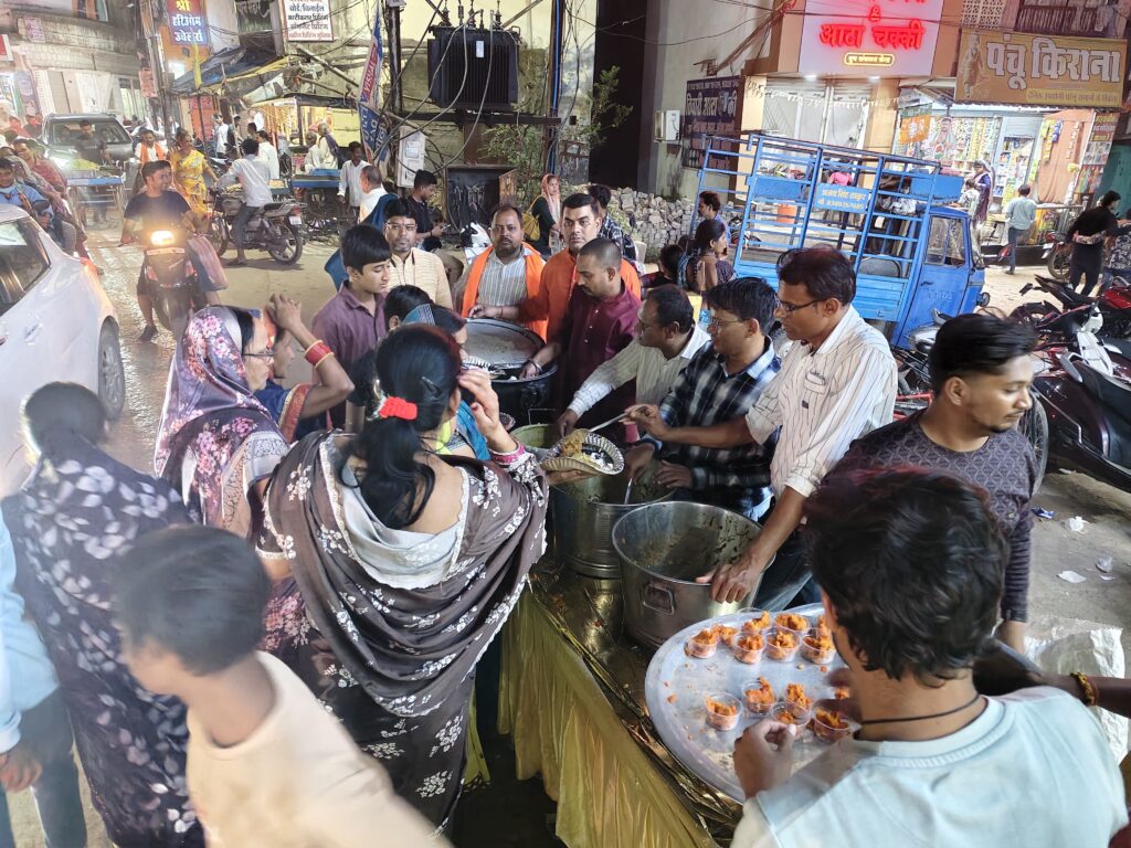तिजराम साहू ब्यूरो मुंगेली, 07 अप्रैल 2025// रामनवमी के पावन अवसर पर मुंगेली जिले में विभिन्न स्थानों पर प्रसाद वितरण कार्यक्रम आयोजित किए गए। इसी क्रम में देवांगन समाज, मुंगेली द्वारा माता परमेश्वरी चौक में चावल, दाल, सब्जी, हलुवा और पुड़ी का प्रसाद वितरण कर रामनवमी पर्व की बधाई और शुभकामनाएं दी गईं। कार्यक्रम की शुरुआत प्रभु श्रीराम और माता परमेश्वरी की पूजा-अर्चना के साथ की गई। इस अवसर पर समाज के सदस्यों ने बताया कि नवरात्रि के पावन पर्व पर माता भवानी की आराधना करने से व्यक्ति के जीवन में शांति, सुख, समृद्धि के साथ मानसिक, चारित्रिक और आध्यात्मिक लाभ प्राप्त होता है। उन्होंने कहा कि इस साधना से सकारात्मक ऊर्जा का अनुभव होता है, जिससे मनोबल बढ़ता है और जीवन में सकारात्मक परिवर्तन आते हैं। पूजा-अर्चना और साधना व्यक्ति को अपने कर्मों के प्रति सकारात्मक दृष्टिकोण और दिशा प्रदान करती है। विवेकानंद वार्ड की पार्षद श्रीमती अर्चना सत्तू देवांगन ने कहा कि हमारे क्षेत्र में धर्म की अविरल धारा बह रही है। देवी मां के आशीर्वाद से जिलेवासियों में आस्था का दीप प्रज्वलित हुआ है। उन्होंने कामना की कि माता की कृपा से सभी जनमानस को सुख-समृद्धि और खुशहाली प्राप्त हो। जिलाध्यक्ष आनंद देवांगन ने इस पावन अवसर पर उन्होंने सभी नागरिकों के जीवन में सुख, समृद्धि और खुशहाली की कामना करते हुए कहा कि मर्यादा पुरुषोत्तम भगवान श्रीराम का जीवन आदर्श, साहस और धर्म के पथ पर चलने की प्रेरणा देता है। सोशल मीडिया प्रचार कोमल देवांगन ने कहा कि भगवान श्रीराम का ननिहाल होने का गौरव छत्तीसगढ़ की धरती को प्राप्त है।वनवास काल के दौरान श्रीराम ने अपने जीवन के महत्वपूर्ण वर्ष यहीं व्यतीत किए। छत्तीसगढ़ का कण-कण प्रभु श्रीराम की स्मृतियों से ओत-प्रोत है। कार्यक्रम को सफल बनाने में विष्णु देवांगन, सुदामा देवांगन, शत्रुघ्नलाल देवांगन, जगदीश, अजय, विनोद, शुभम, वीरेंद्र, चेतन, गोलू, रवि, सिया कंप्यूटर, अजय, अनिल, ददुआ, नानू, बलराम, धनराज, लल्ला, जलेश देवांगन सहित अन्य समाजजनों का विशेष सहयोग रहा।