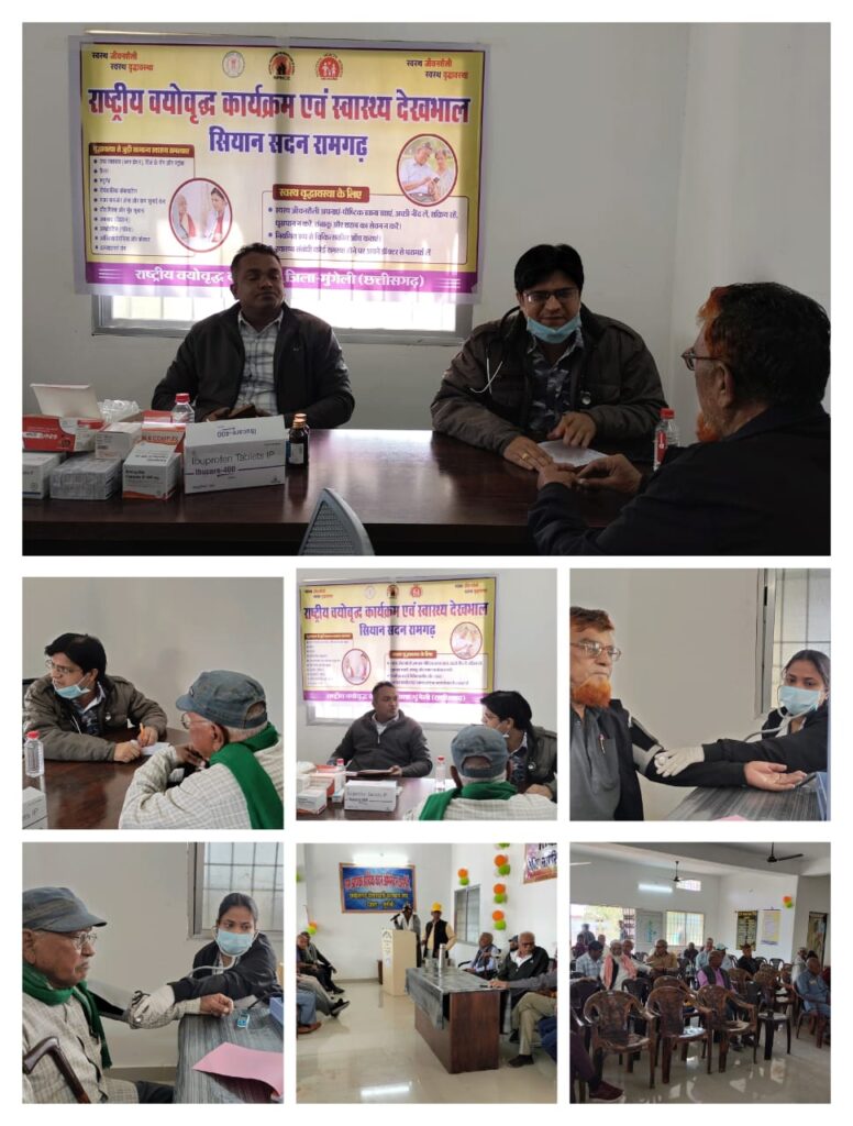 मुंगेली, // राष्ट्रीय स्वास्थ्य मिशन के अंतर्गत राष्ट्रीय वयोवृद्ध कार्यक्रम के तहत मुख्य चिकित्सा एवं स्वास्थ्य अधिकारी डॉ. शीला साहा के निर्देशानुसार रामगढ़ सियान सदन में सभी पेंशनधारी वृद्धजनों का स्वास्थ्य परीक्षण एवं उपचार किया गया। जिला कार्यक्रम प्रबंधक श्री गिरीश कुर्रे, जिला नोडल अधिकारी डॉ. कमलेश खैरवार तथा सिविल सर्जन सह मुख्य अस्पताल अधीक्षक डॉ. एम.के राय के मार्गदर्शन में वृद्धजनों की सामान्य स्वास्थ्य जांच के साथ मानसिक स्वास्थ्य परामर्श भी प्रदान किया गया।