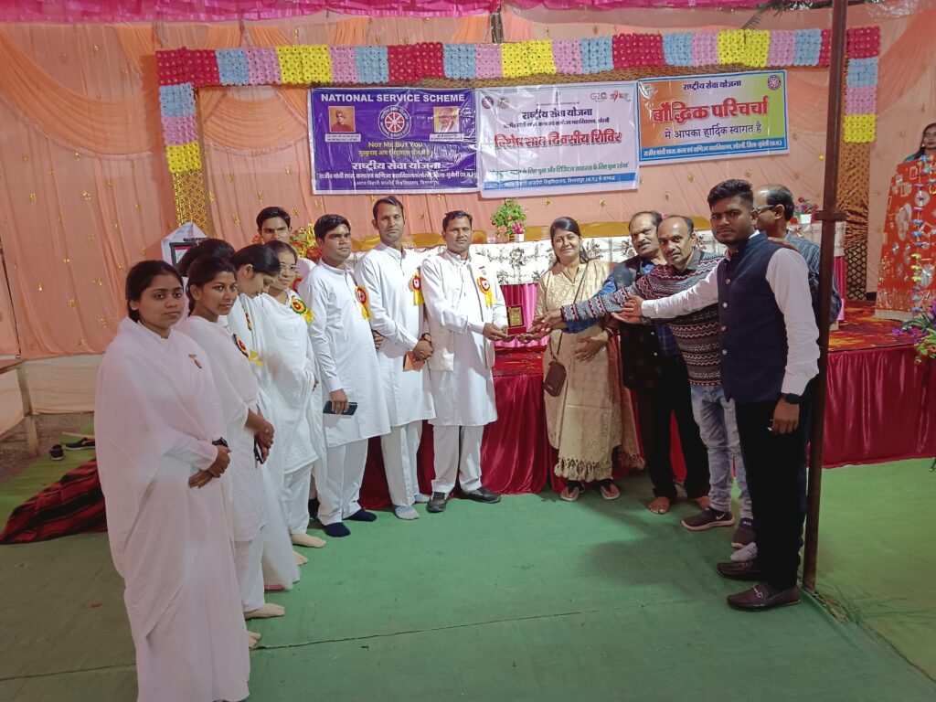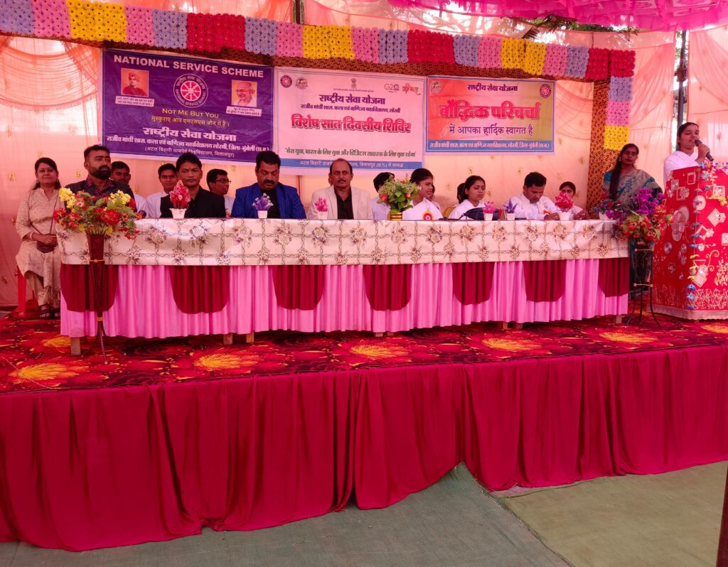 तिजराम साहू ब्युरो मुंगेली लोरमी,,,,,,राजीव गाँधी शासकीय कला एवं वाणिज्य महाविद्यालय लोरमी के राष्ट्रीय सेवा योजना बालिका इकाई के द्वितीय दिवस में आयोजित शिविर के संबंध मे महाविद्यालय के प्रो डॉ नरेन्द्र सलूजा ने बताया कि शिविर के द्वितीय दिवस में सम्मिलित मुख्य अतिथि श्री मनोज सिन्हा कार्यक्रम समन्वयक राष्ट्रीय सेवा योजना अटल बिहारी वाजपेई के द्वारा राष्ट्रीय स्वयंसेवकों को राष्ट्रीय सेवा योजना के महत्व को बताते हुए उसकी ऊंचाइयों एवं गरिमा से परिचित कराया गया एवं सेवा भाव से कार्य करने हेतु प्रेरित किया गया। बिलासपुर से आए हुए ब्रह्म कुमारी संस्था के बीके भाई बहनों द्वारा ध्यान विधि बताते हुए जीवन को नई दिशा प्रदान करने की विधि बताई गई तथा सदैव सकारात्मक रहने हेतु प्रेरित किया गया ।समाज कल्याण विभाग से आए हुए सहायक सांख्यिकी अधिकारी प्रशांत मोकासे द्वारा राष्ट्रीय सेवा योजना के महत्व को बताया गया एवं व्यक्तित्व विकास से संबंधित मार्गदर्शन दिया गया। बालिका वर्ग का कार्यक्रम अधिकारी प्रोफेसर निधि सिंह ने राष्ट्रीय सेवा योजना के स्वयंसेवकों को 24 घंटे तक पर रहते हुए कार्य करने हेतु प्रेरित किया। प्रो.एस के जांगड़े ने कैरियर संबंधित मार्गदर्शन दिया,. इस दौरान श्री रैतराम साहू, श्री दुर्गा प्रसाद साहू,श्री सोनू राम साहू के साथ हीं महाविद्यालय के प्रो.मनीष कश्यप,डहरिया,श्री प्रतापभानु शर्मा,श्री भागबली जायसवाल साथ ही दिव्या कश्यप,संतोषी,वर्षा कुलमित्र,दिव्या राजपूत,पूजा राजपूत,रानी कश्यप,पायल वर्मा,हेमा,सीमा, प्रियंका, मंजू, कामिनी, सीमा, गंगा, तुलेश्वरी,सहित अनेक स्वयंसेवक उपस्थित थे!