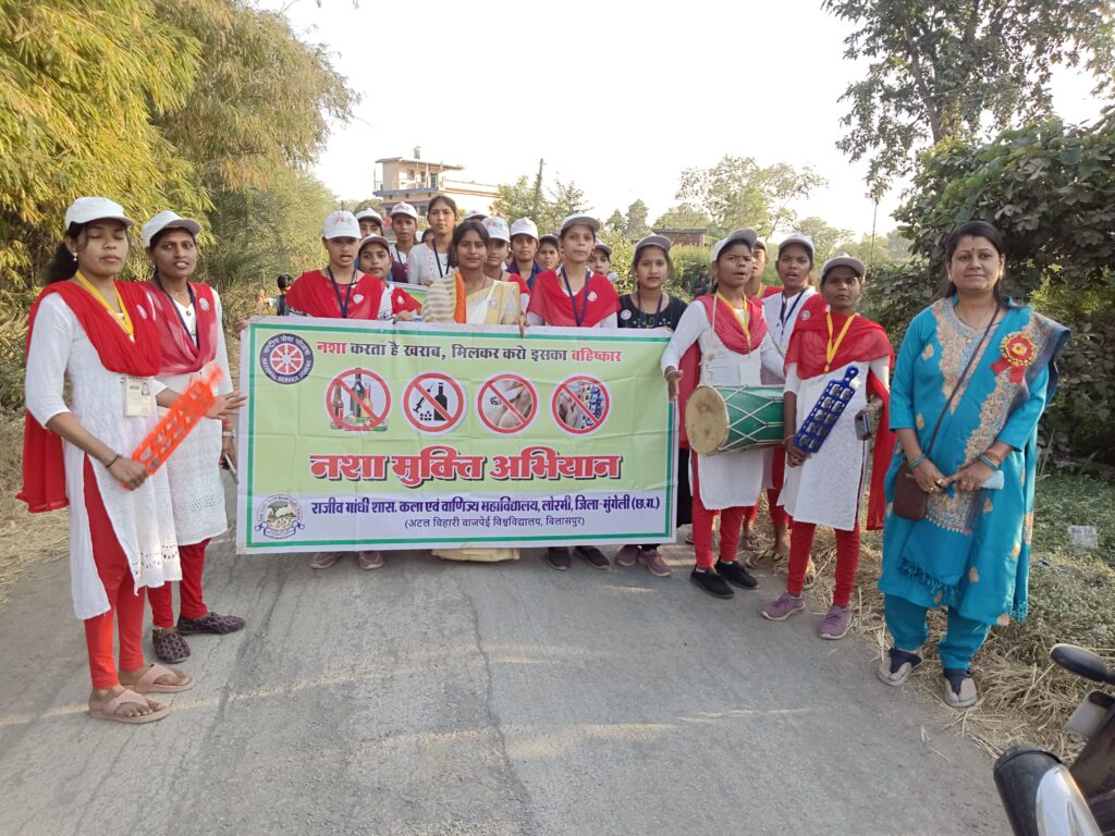 मुंगेली,लोरमी,,,,,,राजीव गाँधी शासकीय कला एवं वाणिज्य महाविद्यालय लोरमी के राष्ट्रीय सेवा योजना बालिका इकाई के पंचम दिवस में मां वीणापाणि के समक्ष दीप प्रज्वलन कर बौद्धिक परिचर्चा का कार्यक्रम आरंभ किया गया जिसमें मुख्य अतिथि के रूप में शाला प्रबंधन समिति के अध्यक्ष श्री श्रीवास के द्वारा भारतीय शिक्षा में हुए बदलाव को उजागर करते हुए nss वालंटियर को प्राचीन शिक्षा पद्धति अपनाने की शिक्षा दी गई। राष्ट्रीय सेवा योजना के कार्यक्रम अधिकारी श्रीमती निधि सिंह द्वारा टीवी मुक्त भारत के लिए शपथ समारोह का आयोजन किया गया सभी राष्ट्रीय स्वयंसेवकों को शपथ दिलाते हुए भारत को टीवी मुक्त बनाने का अभियान प्रारंभ हुआ ।ग्राम पंचायत फुलवारी के गली और मोहल्ले में डिजिटल साक्षरता एवं नशा मुक्त भारत अभियान से संबंधित नुक्कड़ नाटक की प्रस्तुति की गई।इस दौरान अन्य अतिथि के रूप में मंच में विद्यमान प्रोफेसर सुशील कुमार जांगड़े, विभाग अध्यक्ष इतिहास, प्रोफेसर डॉ.एच.एस.राज विभागाध्यक्ष हिंदी,प्रो नितेश गढ़वाल, प्रो हेमा टंडन, श्री रविंद्र श्रीवास्तव कार्यालय प्रमुख, श्री पी.पी.लाठियां ग्रंथपाल प्रो. श्रीमती गंगा गुप्ता , प्रो. श्रीमती श्रेया , प्रो.गुरुदेव , प्रो.अमित निषाद,श्री अविनाश निर्मलकर क्रीड़ा अधिकारी प्रो.मनीष कश्यप ,श्री रैतराम साहू बिलासा पब्लिक स्कूल शिक्षक वीरेंद्र गंधर्व,प्रहलाद साकत, सोनू राम साहू ,गंगा, पद्मिनी, पूजा, मंजूश्री, कामिनी, ऐश्वर्या, सावित्री आदि अनेक स्वयं सेवक उपस्थित रहे।