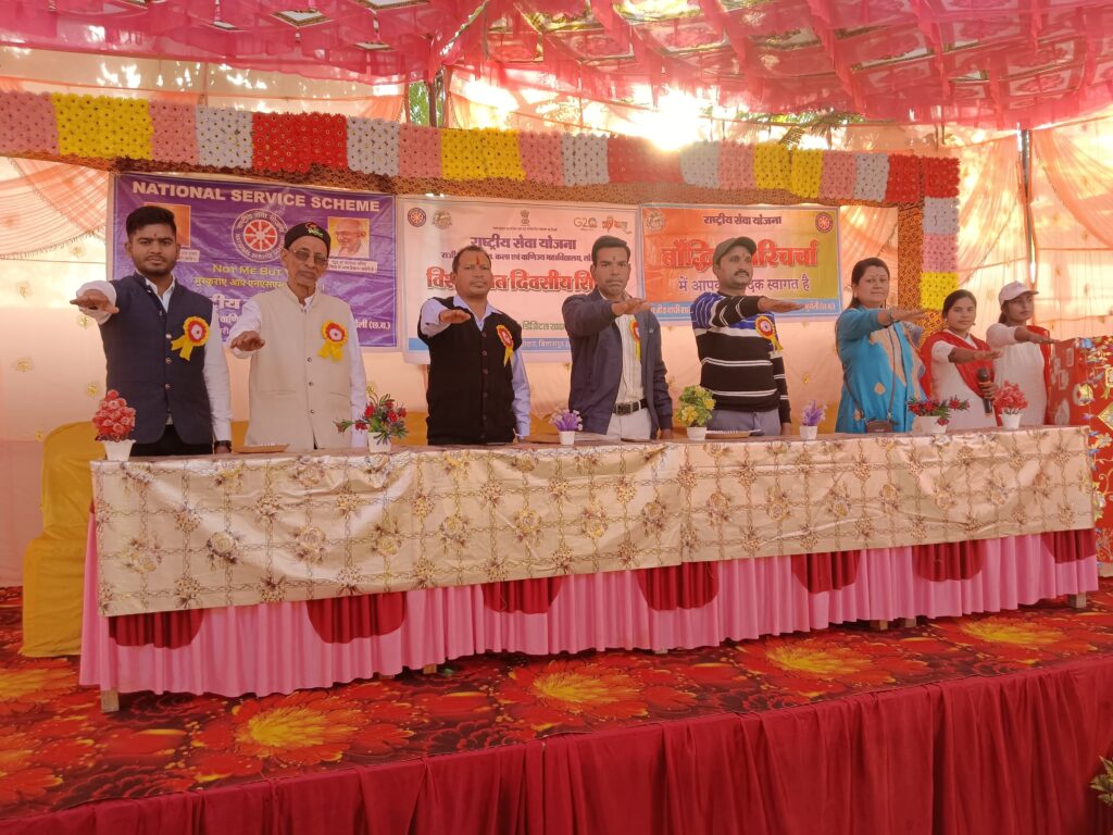 मुंगेली,लोरमी,,,,,,राजीव गाँधी शासकीय कला एवं वाणिज्य महाविद्यालय लोरमी के राष्ट्रीय सेवा योजना बालिका इकाई के पंचम दिवस में मां वीणापाणि के समक्ष दीप प्रज्वलन कर बौद्धिक परिचर्चा का कार्यक्रम आरंभ किया गया जिसमें मुख्य अतिथि के रूप में शाला प्रबंधन समिति के अध्यक्ष श्री श्रीवास के द्वारा भारतीय शिक्षा में हुए बदलाव को उजागर करते हुए nss वालंटियर को प्राचीन शिक्षा पद्धति अपनाने की शिक्षा दी गई। राष्ट्रीय सेवा योजना के कार्यक्रम अधिकारी श्रीमती निधि सिंह द्वारा टीवी मुक्त भारत के लिए शपथ समारोह का आयोजन किया गया सभी राष्ट्रीय स्वयंसेवकों को शपथ दिलाते हुए भारत को टीवी मुक्त बनाने का अभियान प्रारंभ हुआ ।ग्राम पंचायत फुलवारी के गली और मोहल्ले में डिजिटल साक्षरता एवं नशा मुक्त भारत अभियान से संबंधित नुक्कड़ नाटक की प्रस्तुति की गई।इस दौरान अन्य अतिथि के रूप में मंच में विद्यमान प्रोफेसर सुशील कुमार जांगड़े, विभाग अध्यक्ष इतिहास, प्रोफेसर डॉ.एच.एस.राज विभागाध्यक्ष हिंदी,प्रो नितेश गढ़वाल, प्रो हेमा टंडन, श्री रविंद्र श्रीवास्तव कार्यालय प्रमुख, श्री पी.पी.लाठियां ग्रंथपाल प्रो. श्रीमती गंगा गुप्ता , प्रो. श्रीमती श्रेया , प्रो.गुरुदेव , प्रो.अमित निषाद,श्री अविनाश निर्मलकर क्रीड़ा अधिकारी प्रो.मनीष कश्यप ,श्री रैतराम साहू बिलासा पब्लिक स्कूल शिक्षक वीरेंद्र गंधर्व,प्रहलाद साकत, सोनू राम साहू ,गंगा, पद्मिनी, पूजा, मंजूश्री, कामिनी, ऐश्वर्या, सावित्री आदि अनेक स्वयं सेवक उपस्थित रहे।