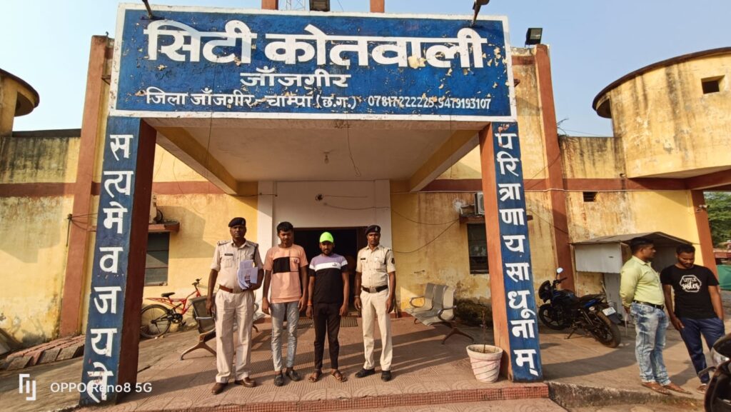 आरोपी 01. राकेश चौरसिया उम्र 23 वर्ष 02. अखिल गढ़ेवाल उम्र 19 वर्ष दोनो निवासी भाटापारा जांजगीर के विरुद्ध अपराध धारा सदर का सबूत पाए जाने से विधिवत गिरफ्तार कर न्यायिक रिमांड पर भेजा गया हैं।