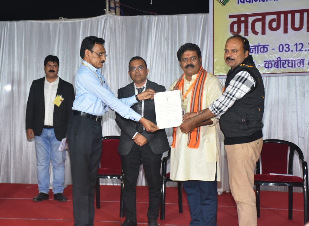 *विधानसभा क्षेत्र 71-पंडरिया से निर्वाचित प्रत्याशी भावना बोहरा और 72-कवर्धा से निर्वाचित प्रत्याषी विजय शर्मा को निर्वाचन प्रमाण पत्र प्रदान किया*