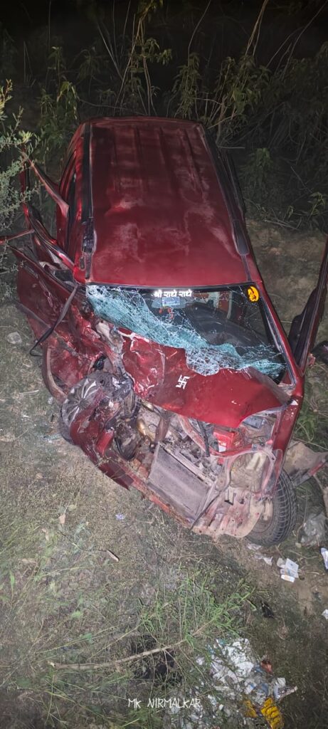 *वैगनआर और बोलेरो की भीषण टक्कर में उपसरपंच सहित दो की मौत* : *महिला गंभीर रूप से घायल*