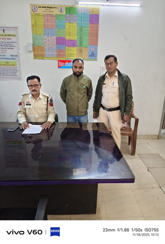 *नाम आरोपीः- 1. दुर्गेश साहू पिता महेत्तर साहू उम्र 27 साल सा. ग्राम चपोरा थाना रतनपुर जिला बिलासपुर हा.मु. चंदेला नगर थाना सिविल लाईन बिलासपुर छ.ग.*