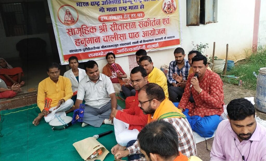 ब्यूरो रायपुर/कवर्धा:- 4 जुलाई को गोवर्धन मठ पुरीपीठाधीश्वर अनंतश्री विभूषित श्रीमज्जगदगुरु शंकराचार्य स्वामी श्री निश्चलानंद सरस्वती महाराज का 82वां प्राकट्य महोत्सव पूरे देश में राष्ट्रोत्कर्ष दिवस के रूप में मनाया गया अनंतश्री विभूषित गोवर्धन मठ पुरी पीठाधीश्वर जगतगुरु शंकराचार्य स्वामी निश्चलानंद सरस्वती महाराज का 82वां प्राकट्य महोत्सव 4 जुलाई 2024 आषाढ़ कृष्ण त्रयोदशी को कवर्धा आदित्य वाहिनी द्वारा मजगाँव स्थित वृद्धाश्रम में शाम 4:00 बजे आयोजित किया गया है जहां वृद्ध जनों को प्रसादी वितरण किया जाएगा साथ ही सामुहिक हनुमान चालीसा पाठ, श्रीराम नाम संकीर्तन, हिंदु राष्ट्र संगोष्ठी एवं भजन गायन के साथ मनाया गया।
