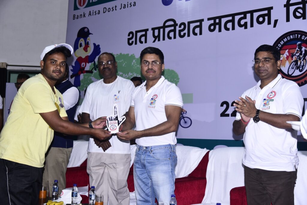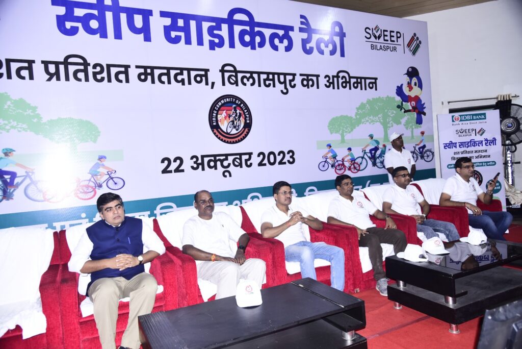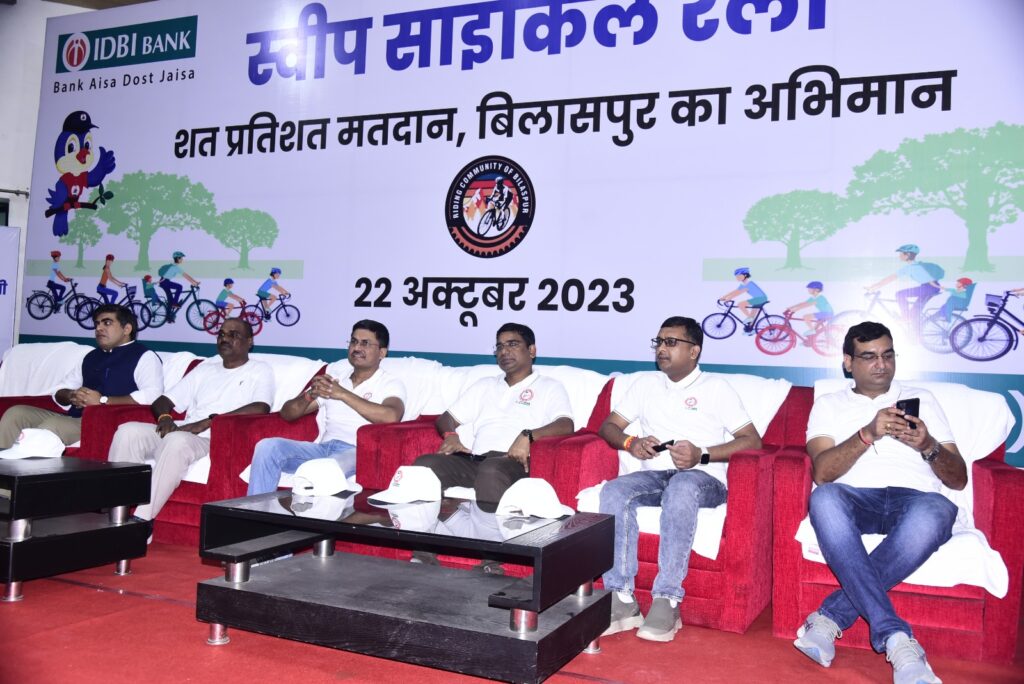 आशीष कश्यप बिलासपुर,/लोकतंत्र के महापर्व के लिए मतदाताओं को जागरूक करने आज शहर में विशाल स्वीप साइकिल रैली आयोजित की गयी। कलेक्टर एवं जिला निर्वाचन अधिकारी श्री अवनीश शरण और पुलिस अधीक्षक श्री संतोष कुमार सिंह ने हरी झंडी दिखाकर साइकिल रैली का शुभारंभ किया। उन्होंने स्वयं साइकिल चलाकर रैली का नेतृत्व किया और युवाओं का हौसला बढ़ाया। यह रैली अरपा रिवर व्यू से शुरू होकर सिम्स चौक लखीराम ऑडिअटोरियम में खत्म हुई। सुबह के खुशनुमा माहौल में हजारों लोगों ने साइकिल चलाकर मतदाता जागरूकता का संदेश दिया। इस रैली में नगर निगम आयुक्त श्री कुणाल दुदावत, डीआईजी श्री एस.के.ठाकुर, जिला पंचायत सीईओ एवं स्वीप के नोडल अधिकारी श्री अजय अग्रवाल, आईडीबीआई बैंक के डीजीएम श्री अमिताभ बाजपेयी, अधिकारी-कर्मचारी, पुलिस, होमगार्ड, नगर सेना के जवान, राइडिंग कम्यूनिटी बिलासपुर के सदस्य, पायल सवेरा फाउंडेशन, विभिन्न संगठनों के पदाधिकारी सहित एनएसएस, एनसीसी, कैडेटस, विद्यार्थियों, युवा मतदाता, सहित अन्य लोगों नेे भी भाग लेकर मतदाता जागरूकता संदेश दिया। मतदाता जागरूकता का संदेश देने रंग-बिरंगे गुब्बारे भी रिवर व्यू में छोड़े गए।