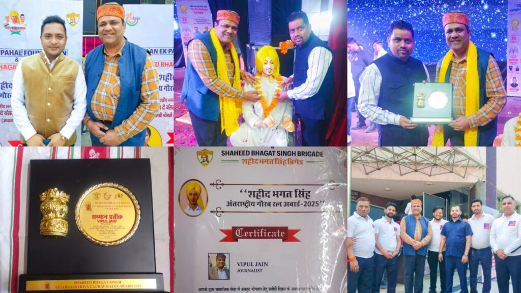 इंटरनेशनल हयूमन राईट प्रोटेक्शन काउंसिल के फाउंडर व चेयरमैन डाक्टर टीएम ओंकार ने बागपत के विपुल जैन को शहीद भगत सिंह अन्तर्राष्ट्रीय गौरव अवार्ड 2025 से किया पुरस्कृत