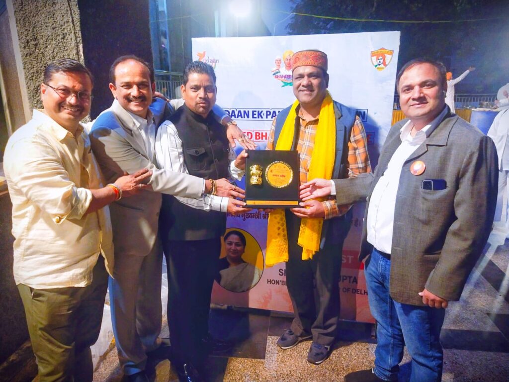 नई दिल्ली। नई दिल्ली के सिविल लाईन्स में स्थित शाह आड़िटोरियम में उड़ान एक पहल फाउंडेशन द्वारा शहीद भगत सिंह अन्तर्राष्ट्रीय गौरव अवार्ड 2025 का भव्य आयोजन किया गया। कार्यक्रम में देश-विदेश की जानी-मानी हस्तियों ने शिरकत की। समारोह में इंटरनेशनल अवार्डी व उत्तर प्रदेश सरकार द्वारा सम्मानित वरिष्ठ पत्रकार विपुल जैन बागपत को शहीद भगत सिंह अन्तर्राष्ट्रीय गौरव अवार्ड 2025 से इंटरनेशनल हयूमन राईट प्रोटेक्शन काउंसिल के फाउंडर व चेयरमैन डाक्टर टीएम ओंकार द्वारा पुरस्कृत किया गया। आयोजनकर्त्ता उड़ान एक पहल फाउंडेशन के चेयरमैन दीपक मित्तल ने बताया कि शहीद भगत सिंह अन्तर्राष्ट्रीय गौरव अवार्ड 2025 ऐसे लोगों को प्रदान किया गया है जिन्होने अपने कार्यो से मानवता को विश्वभर में गौरवान्वित किया है। बताया कि विपुल जैन एक बेहतरीन इंसान है और पूर्व में भी इंटरनेशनल और नेशनल स्तर की अनेकों संस्थाओं और उत्तर प्रदेश सरकार द्वारा उनको सम्मानित किया जा चुका है। दीपक मित्तल ने बताया कि विपुल जैन निष्पक्ष पत्रकारिता के माध्यम से लोगों को इंसाफ दिलाने और समाज की छुपी हुई प्रतिभाओं को देश व दुनिया के सामने लाने में भी महत्वपूर्ण भूमिका अदा करते है और साम्प्रदायिक सौहार्द की अनुपम मिसाल है। विपुल जैन ने अपनी इस उपलब्धि का श्रेय अपने दादा नरेन्द्र जैन, पिता सुदर्शन जैन, माता रेनु जैन, गुरूजनों सहित उन सभी समस्त शुभचिंतकों व सहयोगियों को दिया, जिन्होंने उनको नेक कार्याे को करने के लिए जागरूक किया और जरूरतमंदो की सहायता करने के लिए तन-मन-धन से हर कदम पर उनका साथ दिया। विपुल जैन ने कहा कि मेरी इस उपलब्धि में वे सभी महान लोग बराबर के साझेदार है, जिनके सहयोग, आर्शीवाद और प्रार्थनाओं से वर्ष 2023-2024 में मुझे नवजीवन प्राप्त हुआ है।