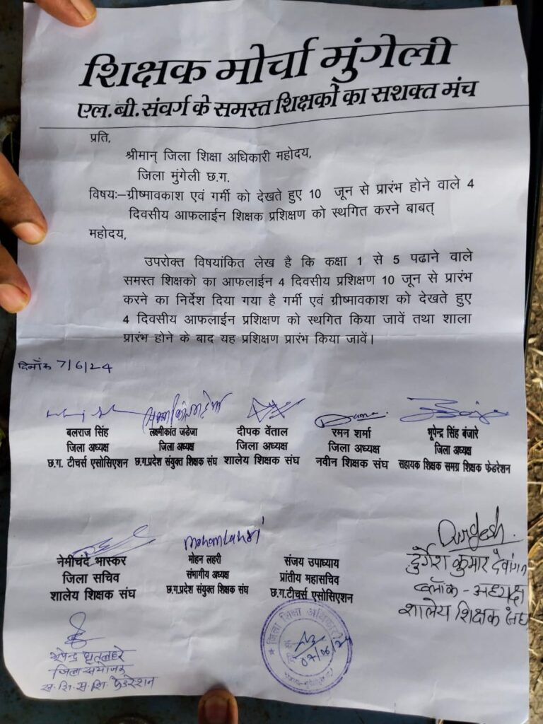 *शिक्षक मोर्चा मुंगेली द्वारा ग्रीष्म अवकाश मे एफ एल एन प्रशिक्षण का किया गया विरोध –* मुंगेली —