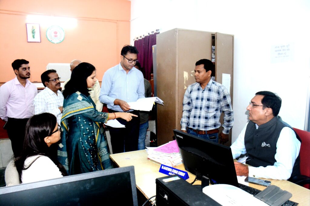 कलेेक्टोरेट कार्यालय के विभिन्न शाखाओं का निरीक्षण कर स्थापना, भंडार, लेखा आदि शाखाओं के संधारण और विभागीय कामकाज की जानकारी संबंधित अधिकारियों से ली।