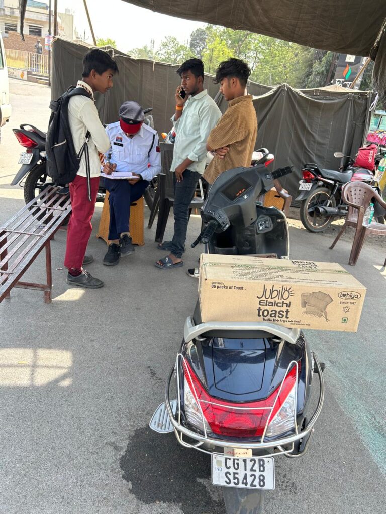 चेकिंग अभियान के दौरान मोटर व्हीकल एक्ट के अंतर्गत 121 वाहन चालकों पर कार्यवाही की गई। इसमें बिना नंबर प्लेट, तीन सवारी, शराब पीकर वाहन चलाने एवं अन्य यातायात नियमों का उल्लंघन करने वालों पर सख्त कार्यवाही किया जा रहा है।