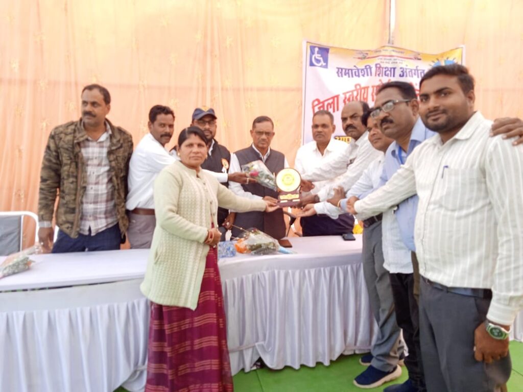प्रतियोगिता APC कश्यप के मार्गदर्शन में संपन्न हुआ । प्रतियोगिता में प्रथम द्वितीय एवं तृतीय स्थान प्राप्त करने वाले सभी प्रतिभागी को पुरस्कार वितरित किया गया कार्यक्रम में सम्मिलित सभी पालकों ,शिक्षकों एवं विद्यार्थियों को स्वादिष्ट भोजन भी उपलब्ध कराया गया ।कार्यक्रम में जिला शिक्षा अधिकारी श्री जी. आर .चतुर्वेदी जी एपीसी श्री संजय साहू जी उत्साहवर्धन के लिए पहुंचे थे जिन्हें स्मृति चिन्ह प्रदान कर सम्मानित किया गया। अपने उदबोधन में जिला शिक्षा अधिकारी महोदय ने कहा कि दिव्यांग बच्चो को सामान्य बच्चो की तरह समान रूप से अवसर प्रदान कराना है ताकि उनके भीतर छिपी हुई अलौकिक प्रतिभा को प्रकट कर सके, उन्हें सहानुभूति की आवश्यकता नही है, केवल और केवल उन्हें अवसर देना हैं l कार्यक्रम में प्रतिभागी बच्चे ,उपस्थित शिक्षक, पालक को शुभकामनाए एवम समावेशी शिक्षा प्रभारी एपीसी कश्यप को सफल कार्यक्रम के लिए बधाई दिए l इस कार्यक्रम में बीआरसी श्री डी.सी. डाहिर,बीआरपी श्री संजीव सक्सेना, बीआरपी श्री रवि लहरे ,बीआरपी श्रीमती प्रिया यादव, सीएससी भगवान सिंह मांडवी, सीएससी रामेश्वर प्रसाद साहू , चंद्रशेखर उपाध्याय , सीता साहू, मधु मेडम, नारायणी कश्यप, संजीव कुर्रे व्यायाम शिक्षक दाबो का विशेष सहयोग रहा l कार्यक्रम प्रतिभागी बच्चे ,पालक, शिक्षक सहित लगभग 200 की गरिमामय उपस्थिति रही l कार्यक्रम का सफल संचालन चंद्रशेखर उपाध्याय ने किया तथा आभार प्रदर्शन समावेशी शिक्षा प्रभारी APC अशोक कश्यप ने किया।