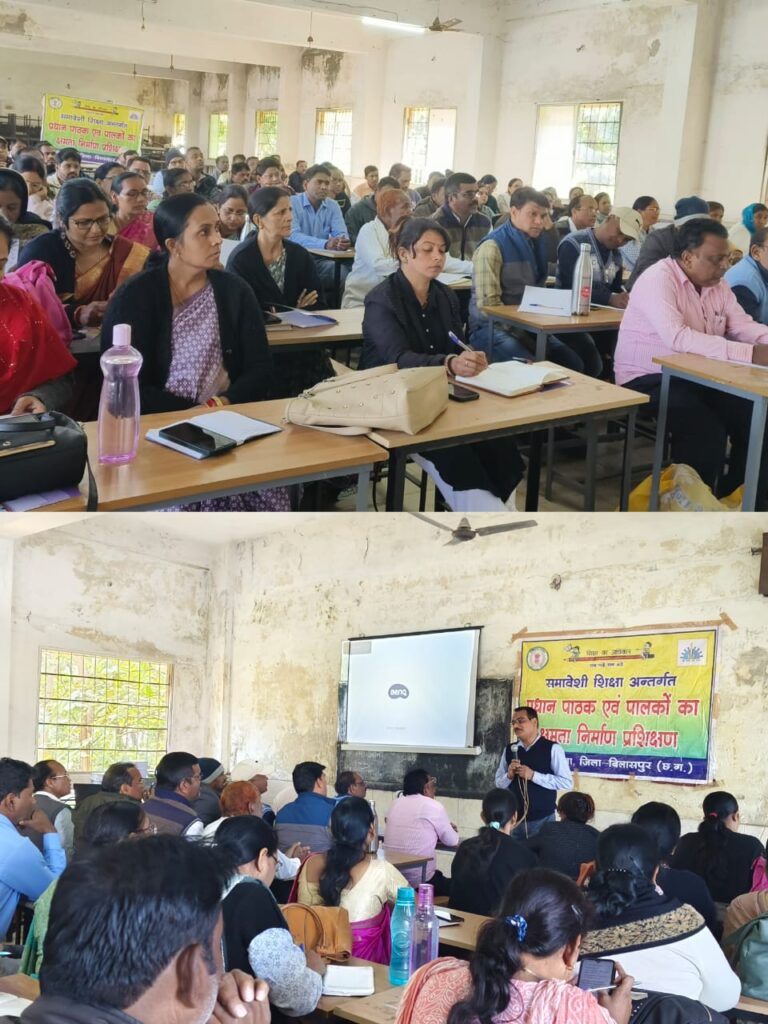 आशीष कश्यप बिलासपुर,/ जिला कार्यालय समग्र शिक्षा द्वारा देवकीनन्दन स्कूल में समावेशी शिक्षा अन्तर्गत ज़िला स्तरीय उनमुखीकरण कार्यक्रम का आयोजन किया गया। जिसके अंतर्गत सेकेंडरी स्तर के 40प्राचार्यों एवं व्याख्याताओं के साथ साथ 20 दिव्यांग बच्चों के पालकों को प्रशिक्षण दिया गया।