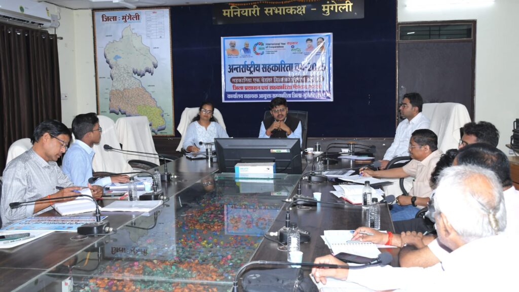 तिजराम साहू ब्यूरो मुंगेली // कलेक्टर श्री राहुल देव की अध्यक्षता में जिला कलेक्टोेरेट स्थित मनियारी सभाकक्ष में जिला सहकारी विकास समिति की बैठक आयोजित किया गया। बैठक में कलेक्टर ने ‘‘सहकार से समृद्धि’’ के विजन को साकार करने, सहकारी आंदोलन को मजबूती प्रदान करने, इसकी जमीनी स्तर पर पहुंच बनाने एवं सहकारी क्षेत्र में विश्व की सबसे बड़ी अनाज भण्डारण योजना के क्रियान्वयन एवं निगरानी के लिए विभिन्न कार्य योजना की समीक्षा की। उन्होंने ग्राम पंचायत में बहुद्देशीय समितियां की स्थापना, स्व सहायता समूह का सहकारी समितियां के रूप में पंजीयन, प्राथमिक कृषि सहकारी समितियां के कंप्यूटराइजेशन प्रधानमंत्री जन औषधि सहित विभिन्न सहकारी गतिविधियों के प्रगति के संबंध में जानकारी ली तथा सहकारी समितियों को सशक्त एवं मजबूत बनाने बेहतर कार्य योजना के साथ कार्य करने के लिए प्रोत्साहित किया।