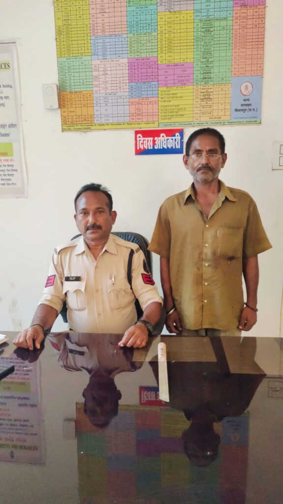 आशीष कश्यप बिलासपुर:-मामले का संक्षिप्त विवरण इस प्रकार है कि दिनांक 12.05.2025 के मुखबीर सूचना मिली कि तारबाहर चैक के पास एक व्यक्ति शराब के नशे में अपने हाथ में धारदार चाकू लेकर लहरा है और आम रास्ता से गुजरने वाले राहगीरो में भय उत्पन कर रहा है कि सूचना पर थाना प्रभारी कृष्णचंद सिदार द्वारा हमराह स्टाफ के तत्काल मौके पर पहुचा तो आरोपी पुलिस को देखकर भाग रहा था जिसे घेराबंदी कर दौडाकर पकडा गया। आरोपी रमेश गुप्ता पिता स्व. कामता प्रसाद गुप्ता 52 वर्ष सा. तारबाहर चैक थाना तारबाहर बिलासपुर के कब्जे से एक नग धारदार चाकू को जप्त कर आरोपी को गिरफ्तार कर माननीय न्यायालय में पेश किया गया है।