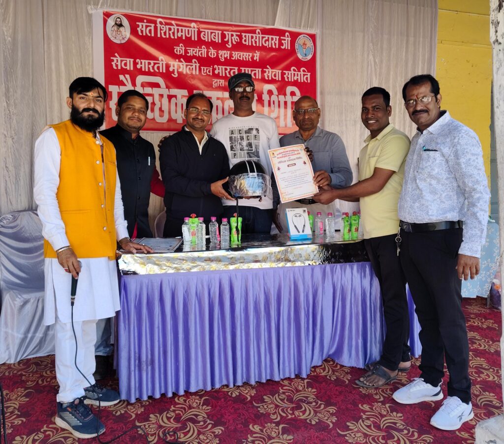 तिजराम साहू ब्युरो मुंगेली // सेवा भारती मुंगेली, भारत माता सेवा समिति की ओर से संत शिरोमणि बाबा गुरु घासीदास के प्रकाश पर्व पर 15 दिसम्बर रविवार को नगर पालिका स्कूल प्रांगण में रक्तदान शिविर का आयोजन किया गया है। इस दौरान देवांगन समाज के युवा अध्यक्ष दुर्गेश देवांगन शिक्षक के साथ सोशल मीडिया प्रचारक एवं समाज सेवी कोमल देवांगन यूट्यूबर रक्त दान किया । इस दौरान कोमल देवांगन ने कहा कि रक्तदान से बड़ा कोई दान नहीं है इसलिए रक्तदान को महादान कहते हैं, क्योंकि यह दान दूसरों की जिंदगी बचाने के साथ खुद की सेहत दुरुस्त करता है। उन्होंने कहा कि रक्तदान शिविर में बढ़ चढ़ कर हिस्सा लेकर सामाजिक कर्तव्य निभाते आ रहे हैं। उन्होंने कहा हर समस्या का कुछ न कुछ विकल्प ढूंढ निकाला गया है। लेकिन ब्लड का कोई विकल्प नहीं है। खून की कमी को केवल ब्लड डोनेशन के द्वारा ही पूरा किया जा सकता है। इसलिए हर सक्षम व्यक्ति को रक्तदान करना चाहिए। जब ब्लड बैंक में रक्त होगा, तभी लोगों की जिंदगी भी बचाई जा सकती है। रक्तदान करने से शरीर में उर्जा आती है, नए रक्तकोष बनते हैं, जिससे शरीर में तंदरूस्ती आती है। रक्तदान के पश्चात प्रशस्ति पत्र, एक सेट हेलमेट, ईयर फोन सहित अन्य साम्रगी भेंट कर देवांगन को सम्मानित भी किया गया। इस अवसर पर सभी रक्तदाताओं को स्व भरत लाल सोनी की स्मृति में निशुल्क हेलमेट वितरित किया जाएगा अथवा नैकबैंड उपहार स्वरुप प्रदान किया गया। रक्तदान के दौरान आकाश सोनी, आशीष तिवारी, राहुल पाठक, राजा तंबोली, रामकुमार साहू एवं गजेन्द्र साहू, ताकेश्वर साहू सहित अन्य लोग मौजूद रहे।