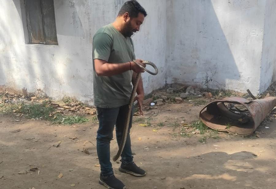 *स्कूल के शौचलय में घूस कर बैठ था 7 फिट लंबा साप,शौचालय के अंदर गए बच्चों ने देखा साप तो मची चीख पुकार, जितेंद्र सारथी ने किया रेस्क्यू।*