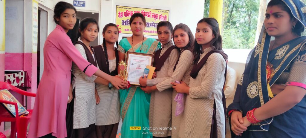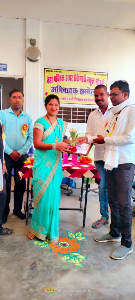 2022 23 की बेहतर शिक्षा व व्यवस्थित विद्यालय संचालन के लिए विद्यालय की प्राचार्या प्रियंका टोंडे को विद्यालय संचालक सुनील लहरे ने स्कूल श्री पुरुस्कार प्रमाण पत्र, स्मृति चिन्ह, कलम, 5000 पांच हजार रुपए नगद राशि प्रदान करने की घोषणा किये। विद्यालय संचालक ने बताया कि यह पुरुस्कार प्रत्येक वर्ष बेहतर कार्य करने वाले शिक्षको को दिये जाने की बात कही। यह पुरुस्कार प्रथम वर्ष इसी सत्र से दिया गया है जो निरंतर जारी रहेगा। प्राचार्या को यह पुरुस्कार उपस्थित जन प्रतिनिधि, पालकगण शिक्षक शिक्षिका व बच्चों ने मिलकर देते हुवे बधाई व शुभकामनाएं प्रेषित किए। पुरुस्कार देने हेतु चयन किए जाने पर प्राचार्या प्रियंका टोंडे ने विद्यालय परिवार का आभार प्रकट किया। अंत में उपस्थित जनप्रतिनिधि, पालकों, शिक्षकों व बच्चों को प्रसाद वितरण किया गया।