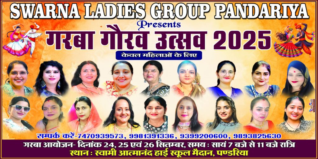 रायपुर/कवर्धा/पंडरिया:- नगर की शान स्वर्णा लेडीज ग्रुप द्वारा लगातार तीसरे वर्ष भी महिलाओं के लिए विशाल और अत्यंत अनुशासित गरबे का आयोजन स्वामी आत्मानंद हाई स्कूल मैदान लोरमी रोड पंडरिया में शुभारंभ किया जा चुका है वही शक्ति के आराधना का पर्व नवरात्रि के विशेष अवसर पर इस वर्ष भी तीन दिवस 24.09.25 से 26.09.25 तक गरबे का एक बार फिर से ऐतिहासिक भव्य और विशाल गरबे का आयोजन का शुभारंभ किया गया है गरबा महोत्सव के उद्घाटन सत्र के मुख्य अतिथि राजनांदगांव लोकसभा सांसद संतोष पाण्डेय एवं समाज सेविका रेखा पाण्डेय द्वितीय दिवस के मुख्य अतिथि पंडरिया विधायक भावना बोहरा एवं समापन समारोह 26. 09.25 के मुख्य अतिथि केंद्रीय राज्य मंत्री भारत सरकार तोखन साहू तखतपुर विधायक तथा स्वर्णा लेडीज ग्रुप के संरक्षक धर्मजीत सिंह ठाकुर समाज सेवक सुरेंद्र सिंह छाबड़ा मुख्य रूप से उपस्थित रहेंगे वही स्वर्णा लेडीज ग्रुप की अध्यक्ष मीनू छाबड़ा एवं संयोजक व संचालक उमा पाठक ने बताया कि इस महोत्सव का मुख्य आकर्षण बहुत ही सुंदर गरबा पंडाल,आकर्षक लाइटिंग व्यवस्था,बैठक व्यवस्था,गन फायर अंम्ब्रेला डांस, कलर स्मोक एवं अनुशासन है जिसमें सिर्फ महिला प्रतिभागी ही भाग ले रहे हैं तथा दर्शकों को प्रवेश फैमिली एंट्री पास के माध्यम से ही दिया जाएगा वहीं इस बार भी गरबा प्रतिभागी स्थानीय के साथ साथ कबीरधाम जिले के अतिरिक्त कोरबा,बिलासपुर लोरमी से आ रहे है पंजीकृत प्रतिभागियों को 15 दिवस पूर्व से ही प्रशिक्षित सी एम डी ए डांस अकादमी विनय और उनके ग्रुप और अक्षिता श्रीवास्तव द्वारा गरबे का अभ्यास कराया जा रहा है ग्रुप के सभी सदस्यों के द्वारा अपने अपने स्तर पर जिम्मेदारियों के साथ इस ऐतिहासिक आयोजन के तैयारी कर रहे है बता दे कि ग्रुप के सक्रिय सदस्य स्मृति श्रीवास्तव ,सतनाम छाबड़ा ,रश्मि श्रीवास्तव, गुंचा सिँह, छाया सिंह ठाकुर, नीतू भट्ठ,नियति जायसवाल , निमिता ठाकुर, पिंकी दुवा, रजनी दुवा,स्वीना छाबड़ा ,ऋचा सिंग