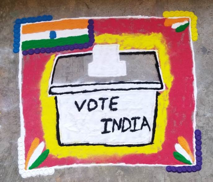 रंगोली प्रतियोगिता के माध्यम से मतदाताओं को मतदान हेतु किया गया प्रेरित।