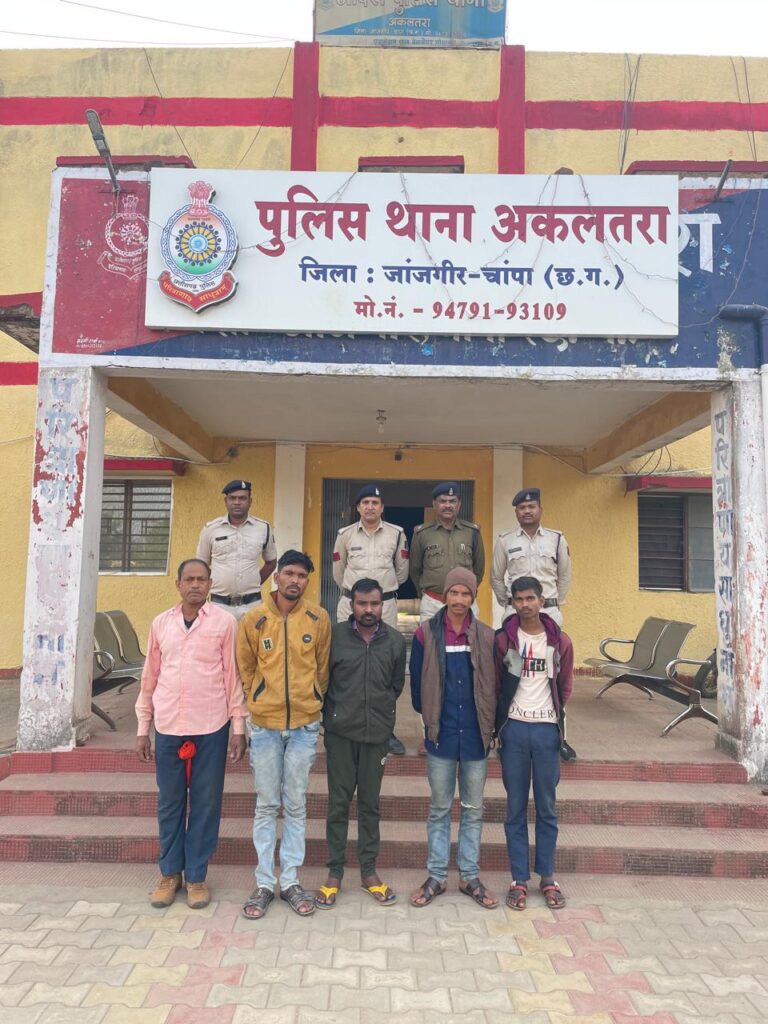 उपरोक्त कार्यवाही मे निरी. मणिकांत पाण्डेय थाना प्रभारी अकलतरा, सउनि दाउलाल बरेठ, प्र.आर. विवेक सिंह, निसार परवेज, आरक्षक शोमेश शर्मा, शेष नारायण साहू का सराहनीय योगदान रहा।