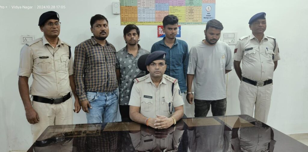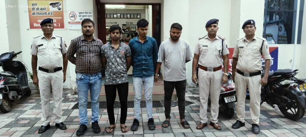 3- संतोष सोनी पिता दुष्यंत सोनी उम्र 27 साल सा. मोपका चैक पुराना तालाब जोरापारा मोपका थाना सरकंडा 4- तुषार मजूमदार पिता कल्याण मजूमदार उम्र 30 साल सा. राधिका विहार फेस-2 थाना सरकंडा