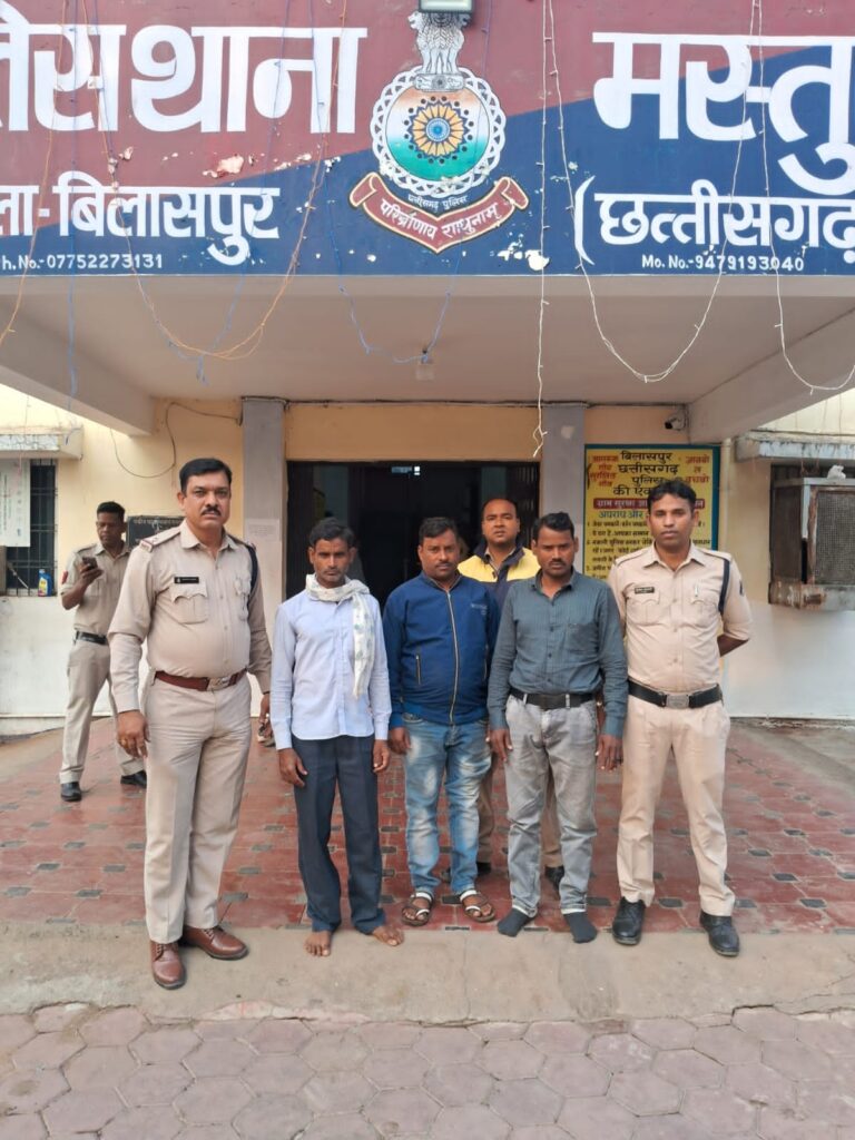 आशीष कश्यप बिलासपुर:– मामले का संक्षिप्त विवरण इस प्रकार है कि घटना दिनाक 21.11 2024 को प्राथी बजरग ठाकुर थाना उपस्थि आकर रिपोर्ट दर्ज कराया कि दिनाक 20.11. 2024 को अपने हाईवा से राखड लोड लेकर लिमतरा करो रोड में खाली करने जा रहा था तभी रात करीब 09 बजे दरीघाट रास्ते में सामने से दो पहिया वाहन कमाक सीजी 10 ए क्यू 1154 में सवार तीन व्यक्ति पेरे गाड़ी के सामने खड। पर गाली गलौच करते हुए पत्थर से सामने का मुख्य कांच तथा साईड वाला खिडकी तोड दिये एवं मुझसे मारपीट करते हुए मेरे जेब में रखे नगद 2000 रूपये एवं गाडी में रखे जैक राड एवं गाडी का चाबी को लूट कर भाग गये। प्रार्थी के रिपोर्ट पर अपराध पंजीबद्ध कर विवेचना में लिया गया है। विवेचना के दौरान आरोपी राम लाल यादव पिता स्व रामझूल यादव उम्र 34 साल साकिन निवासी पाडेयपुर थाना सीपत जिला बिलासपुर छग 02 उषा कुमार यादव पिता स्वः मोहन यादव उम्र 50 साल निवासी कचनपुर थाना पथरिया जिला मुंगेली 03 तिलक यादव पिता सांवत यादव उम्र 43 साल निवासी पाडेयपुर थाना सीपत जिला बिलासपुर को उनके घर में दबिश देकर हिरासत में लेकर पूछताछ किया गया जो दिनाक घटना को अपराध घटित करना स्वीकार करने पर आरोपियो को आज दिनाक 22 11.2024 को विधिवत गिरफतार कर न्यायिक रिमाण्ड पर भेजा गया है।